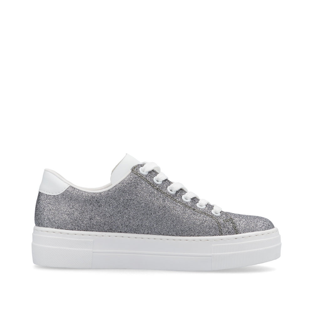 Cool, décontractée et tendance ! Ces baskets basses argentées Rieker allient design tendance, confort optimal et fonctionnalité. Leur construction cousue en fait un compagnon particulièrement résistant et flexible. Le laçage permet également un ajustement parfait. La semelle plateforme amortit les chocs et est très légère, offrant un double confort à chaque pas. La semelle de recouvrement est également ultra-souple.