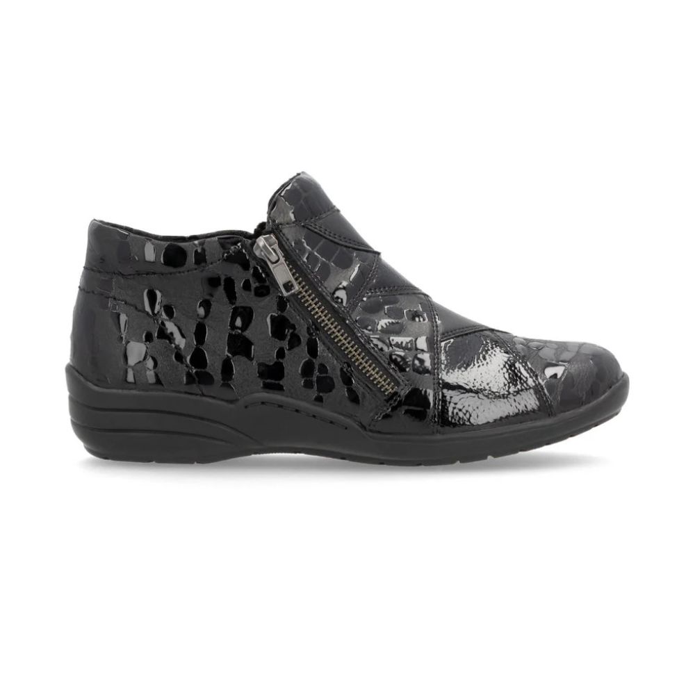 Classiquement féminines et chics ! Ces bottines noires Remonte en cuir lisse respirent la féminité. La fermeture éclair facilite l'enfilage et le retrait. Une semelle légère et amortissante, ainsi qu'une semelle intérieure rembourrée et amovible, sont autant d'atouts de ces bottines. De plus, leur largeur supplémentaire offre une plus grande liberté de mouvement à l'avant-pied. On adore !