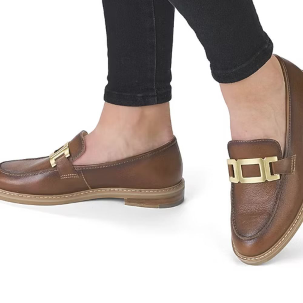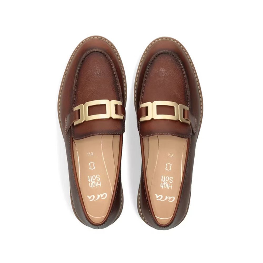 Découvrez le mocassin cognac pour femme Ara Kent, où l'élégance rencontre le confort supérieur. Fabriquée en cuir lisse de haute qualité, cette chaussure à enfiler est dotée d'un bijou décoratif chic sur le cou-de-pied pour une touche sophistiquée. La doublure en cuir et la semelle intérieure intégrée garantissent un port luxueux, tandis que la technologie Highsoft offre un soutien et une flexibilité optimaux.