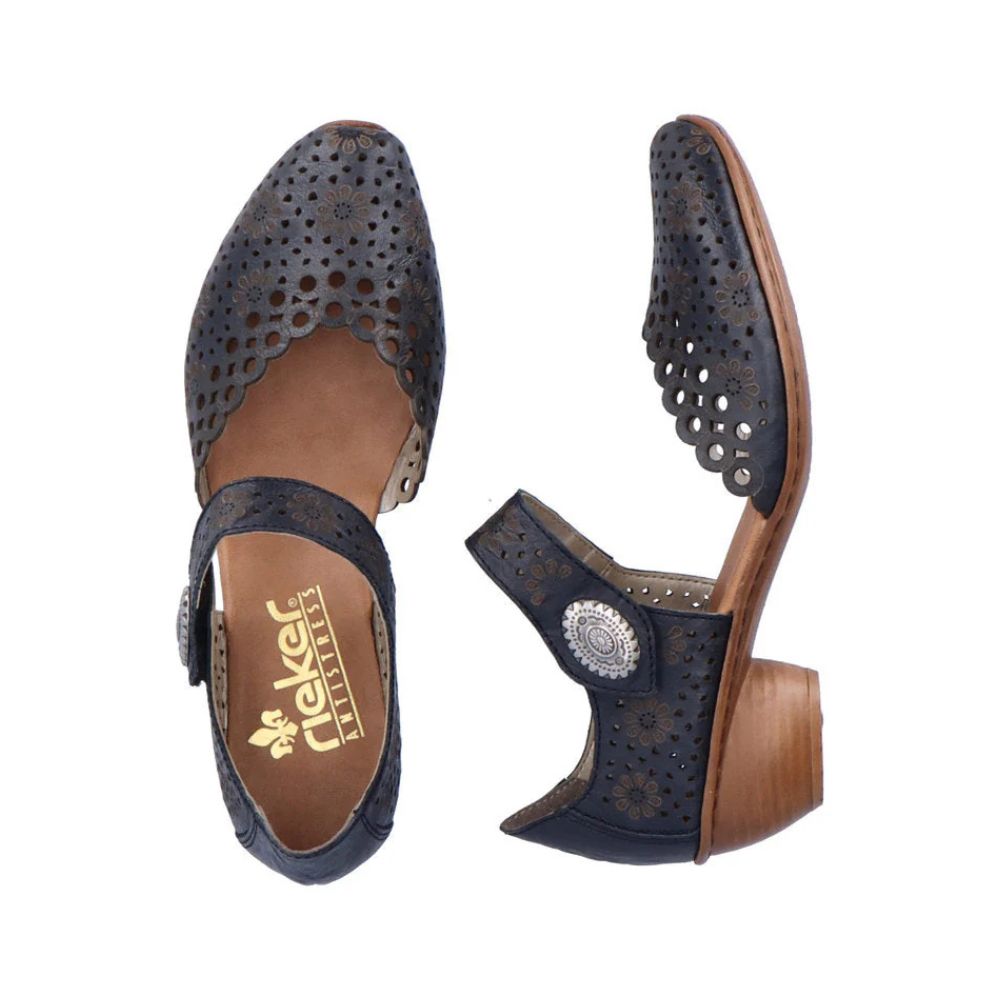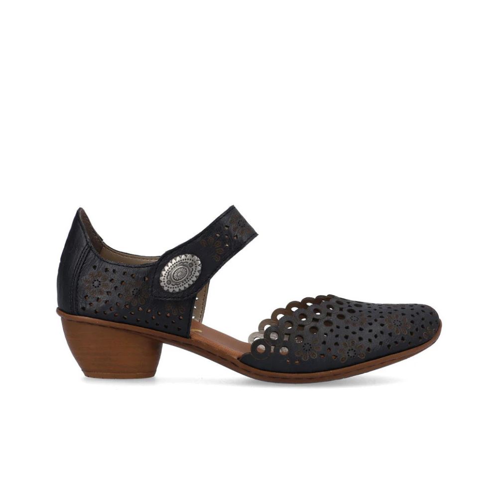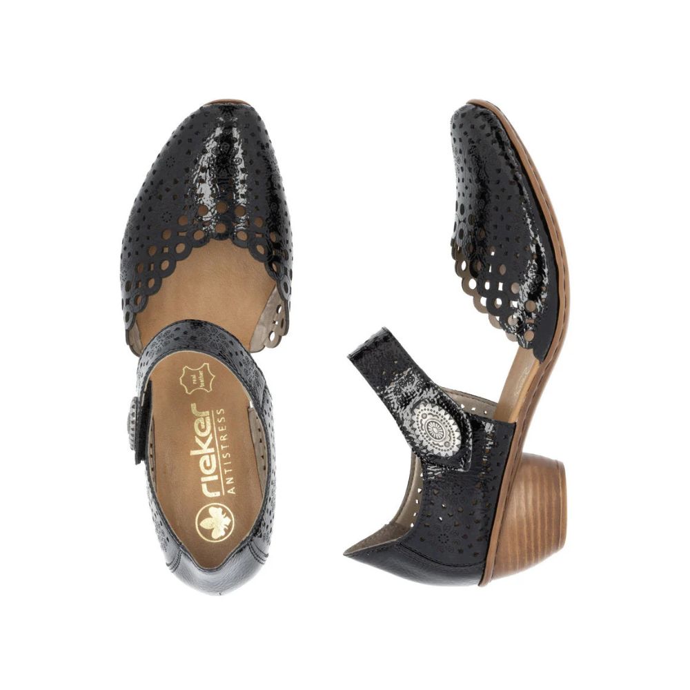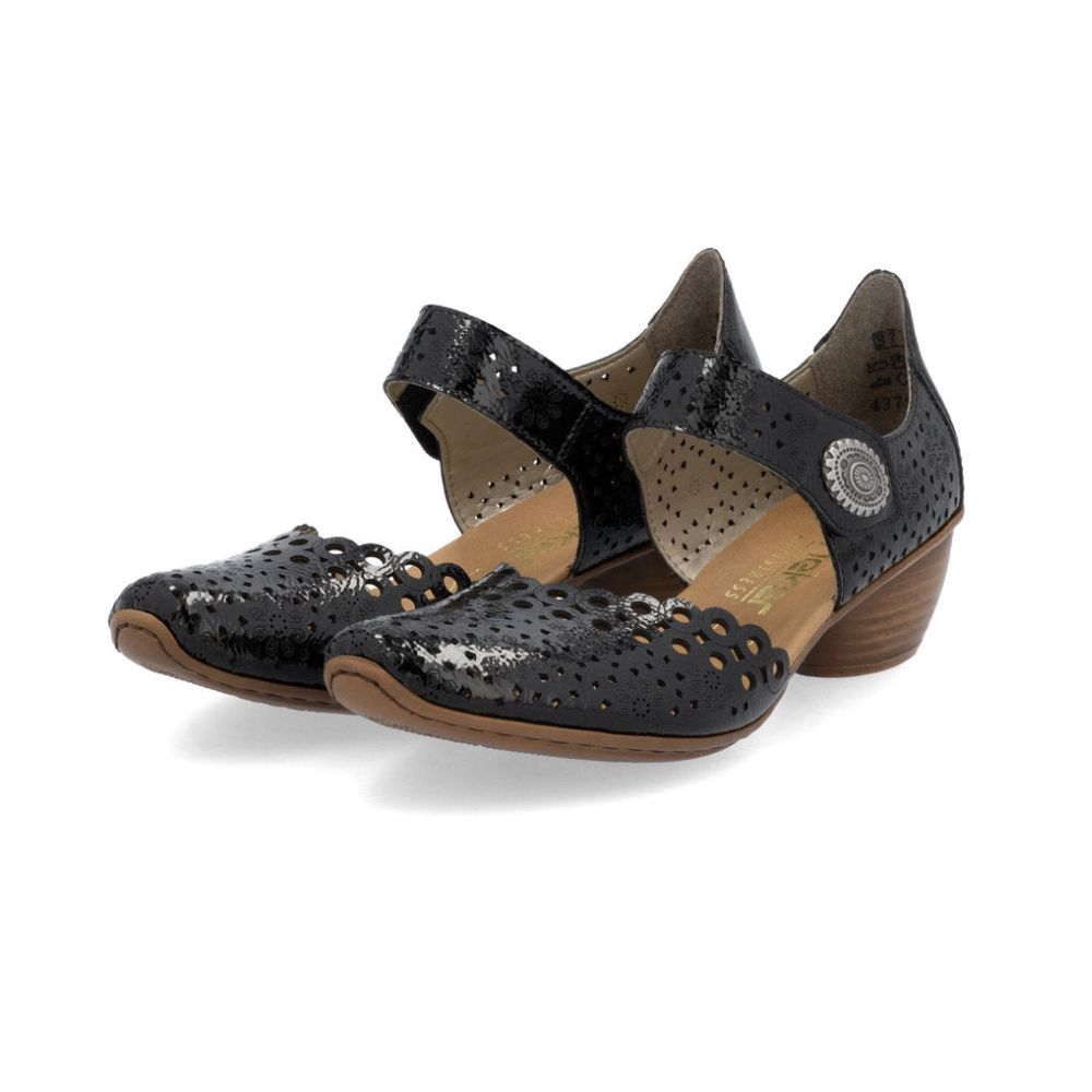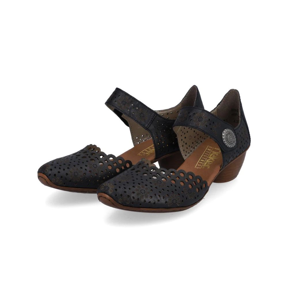 Confortables et élégants, ça marche ! Ces escarpins Rieker en cuir lisse allient design tendance, confort optimal et fonctionnalité. Grâce à leur construction cousue, ces chaussures sont particulièrement stables et offrent une semelle souple qui s'adapte parfaitement au pied. Ce modèle s'enfile en un clin d'œil grâce à une fermeture auto-agrippante. Leur forme ajourée est un détail raffiné. Grâce à leur semelle légère et amortissante à talon bloc, vos pieds bénéficieront d'un confort optimal à chaque pas. Le chaussant étroit E 1/2 offre un maintien supplémentaire. Une sensation de bien-être tendance dans le style Rieker !