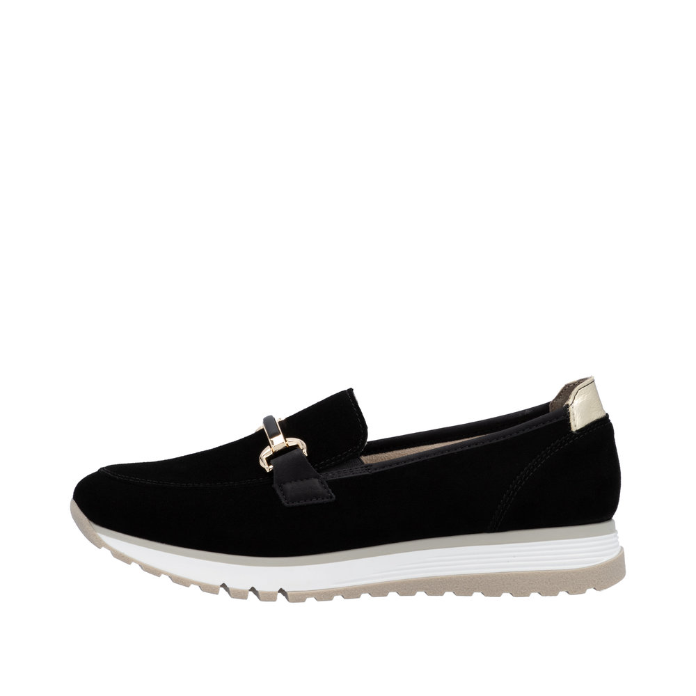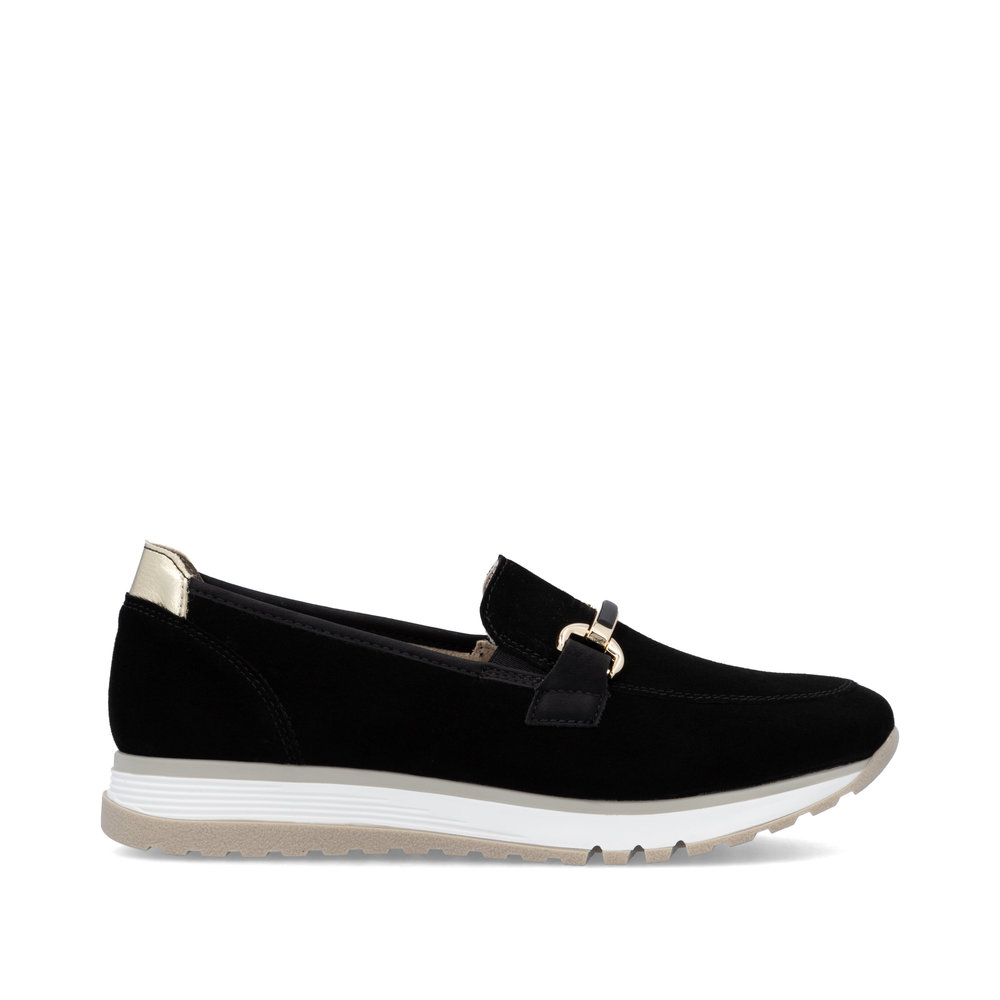Toujours une longueur d'avance ! Vous ne voudrez plus quitter ces mocassins Rieker noirs en daim. Leur bande élastique facilite l'enfilage et le retrait. Leur semelle adhérente offre une excellente adhérence pour une foulée sûre. La semelle intérieure rembourrée et amovible offre confort et fonctionnalité au quotidien. La largeur H supplémentaire offre un confort optimal, offrant plus d'espace. Tout en un : le top !