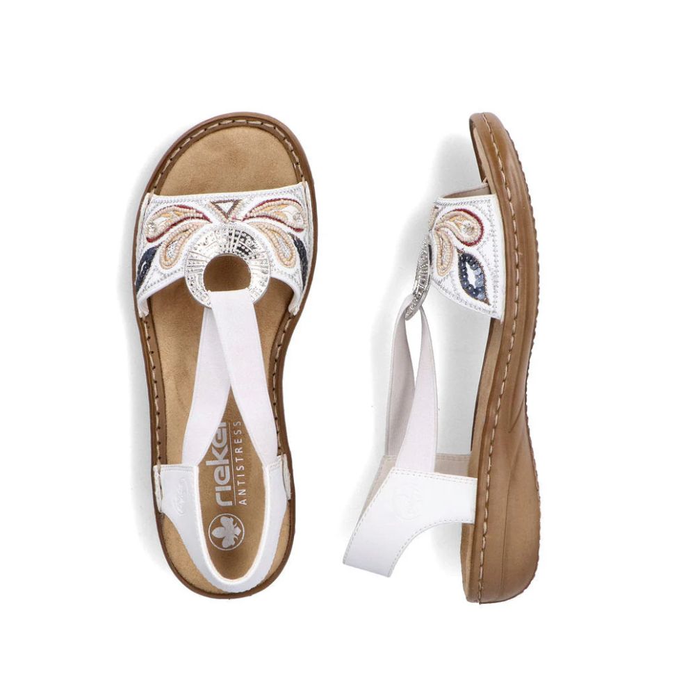 Ça prend de l'air ! Optez pour un confort maximal et un style ultime avec ces sandales à brides Rieker. La construction cousue rend la chaussure robuste et la semelle particulièrement flexible, sans abîmer la tige. La bande élastique facilite l'enfilage et le retrait. Grâce à la semelle légère et amortissante à talon compensé, vos pieds profiteront d'un confort optimal à chaque pas. La coupe slim E 1/2 épouse parfaitement la forme de la chaussure. Un pur luxe !