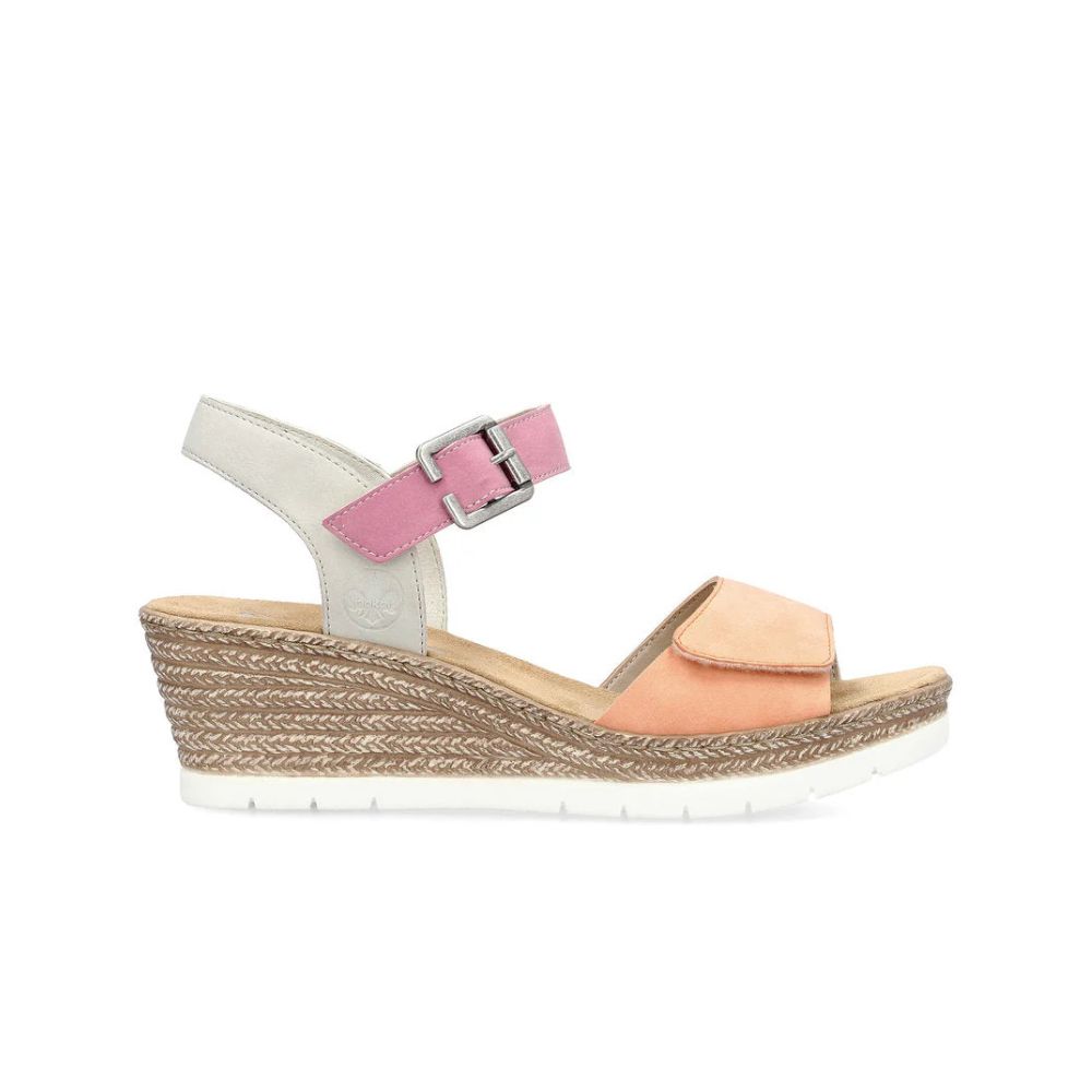 Le summum du confort ! Ces sandales compensées orange pastel signées Rieker bénéficient d'une confection soignée. Grâce à leurs brides et à leur fermeture auto-agrippante, elles s'ajustent parfaitement au pied. La bride au talon offre un maintien supplémentaire. La semelle compensée est à la fois légère et amortissante, offrant un double bien-être à chaque pas. Impossible de faire mieux !