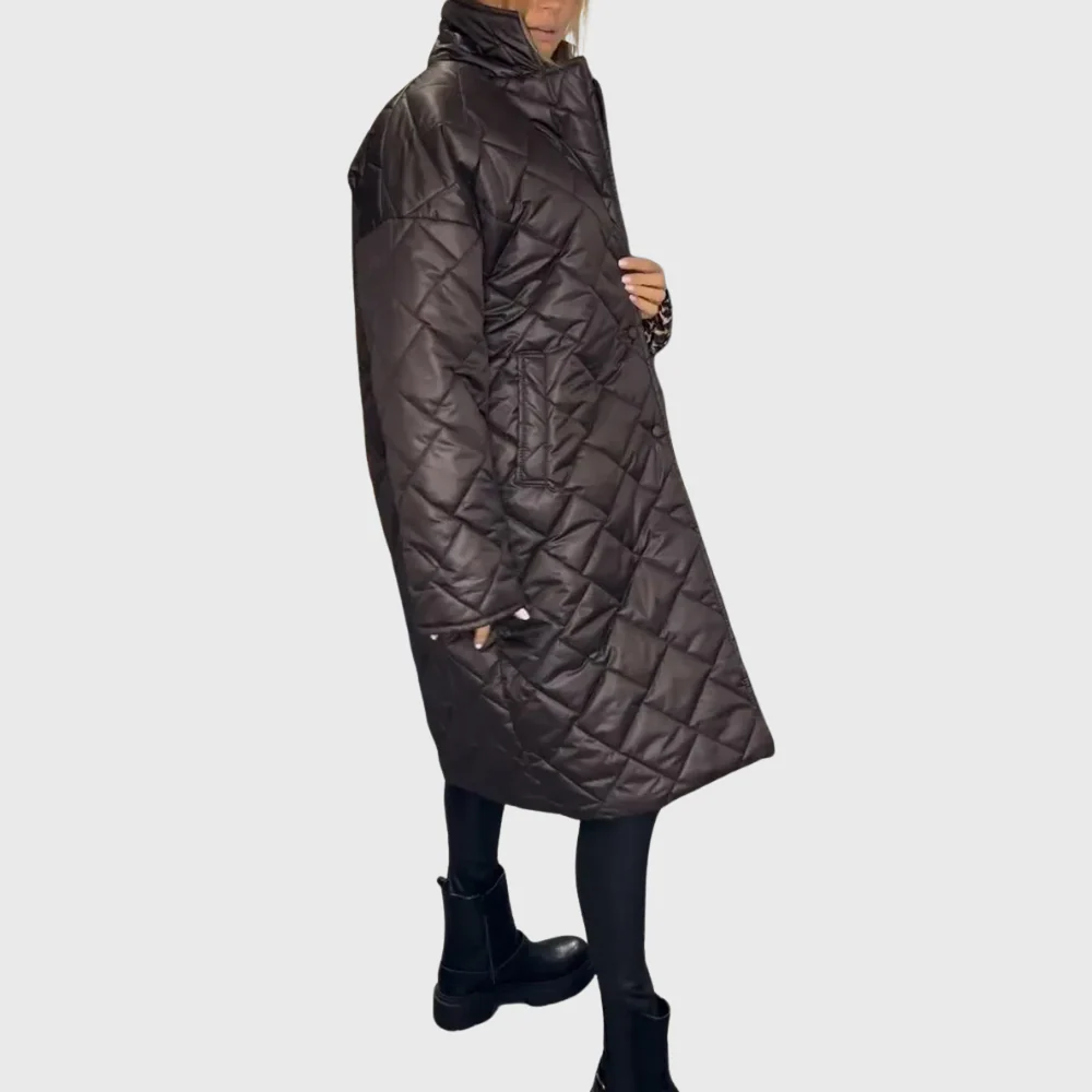Ce manteau matelassé réversible incarne la rencontre parfaite entre raffinement et audace. Son extérieur lisse et discret s’adapte à toutes les occasions, tandis que sa doublure intérieure à imprimé léopard dévoile une touche glamour et pleine de caractère. Chaud, léger et élégant, il s’impose comme la pièce maîtresse de la saison.