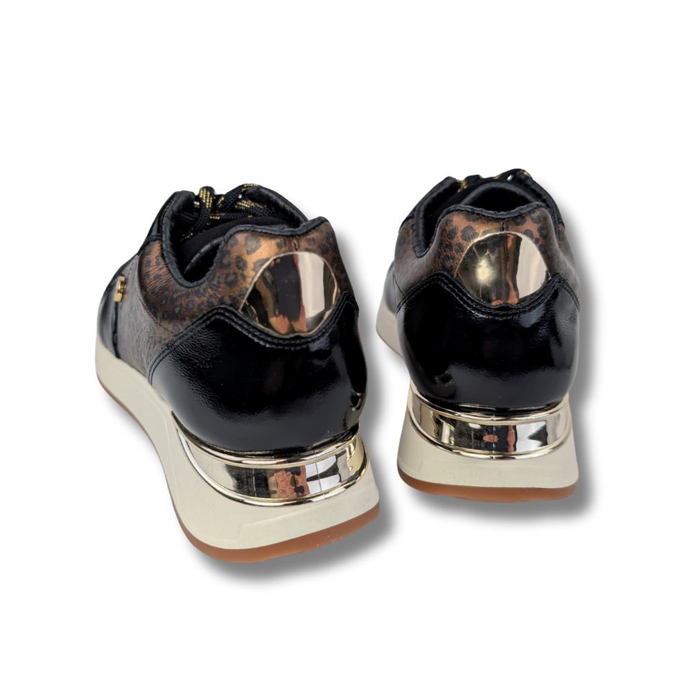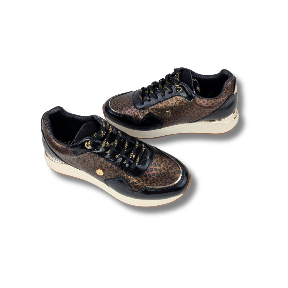 Sneakers Sole Mio, fabriquées au Portugal, alliant savoir-faire et qualité. Confectionnées en cuir vernis rehaussé d’un motif léopard tendance, elles apportent une touche audacieuse et raffinée à vos tenues. Les lacets brillants soulignent le caractère moderne du modèle. Des sneakers au style affirmé, idéales pour un look chic et contemporain.