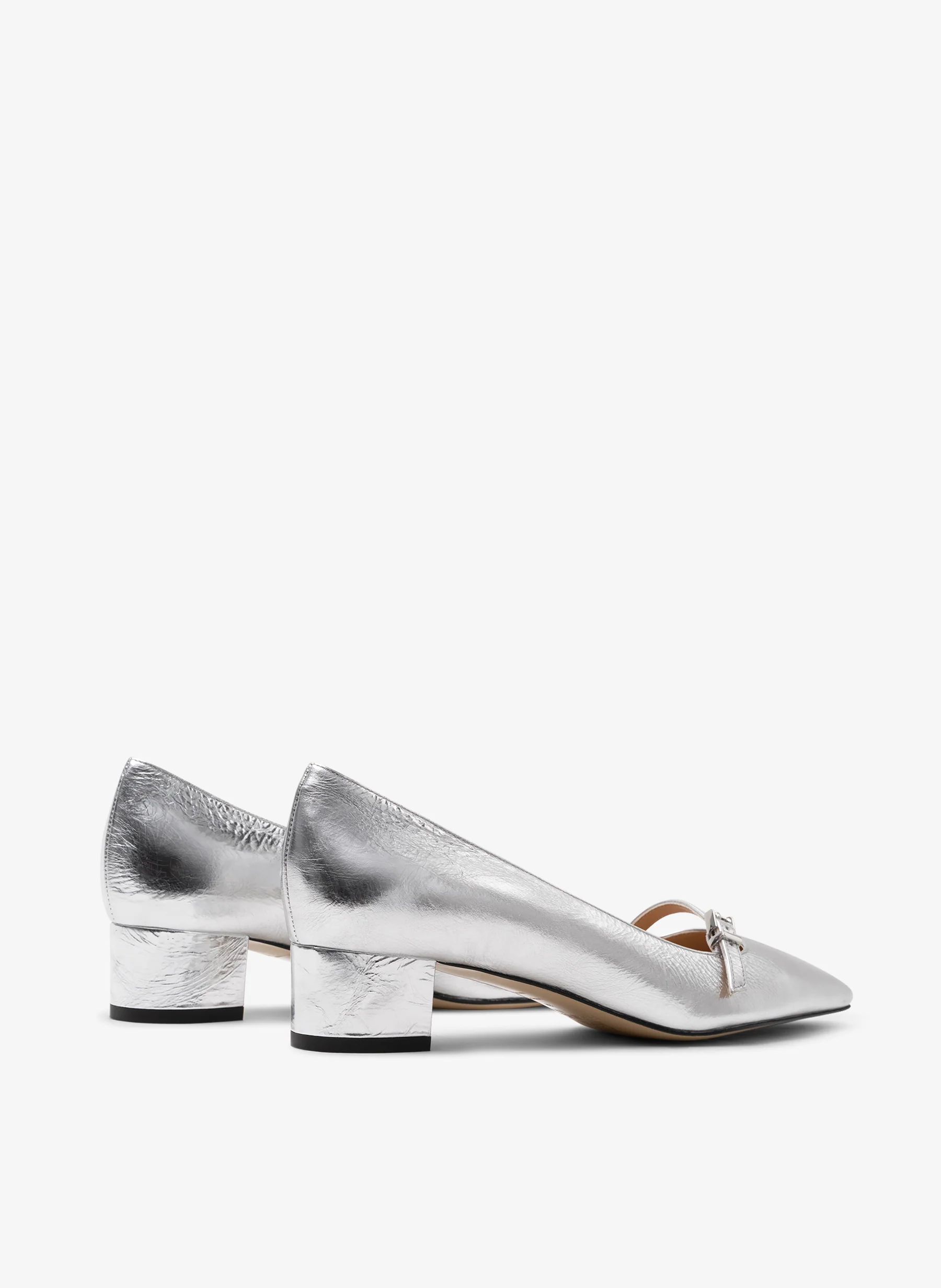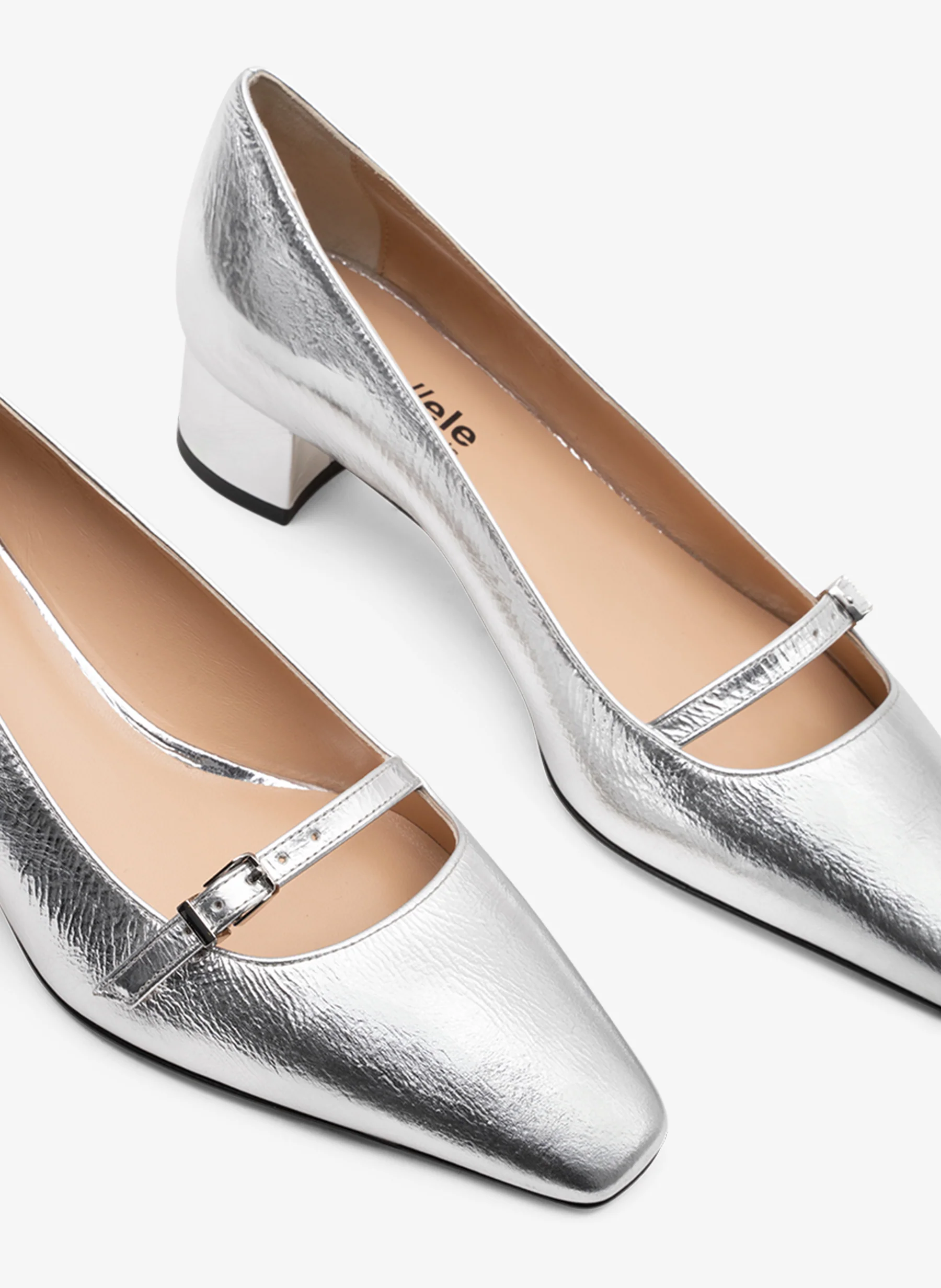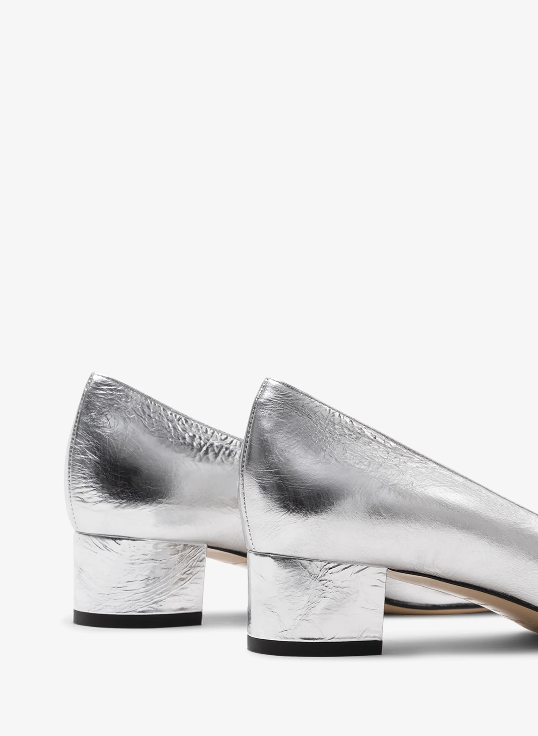 Petit talon carré recouvert peau, d’une hauteur de 3,5cm.