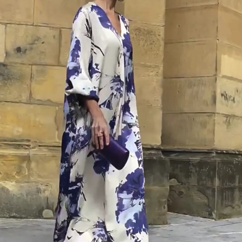 • Contenu du colis 1 × Robe longue imprimée à col en V pour femme