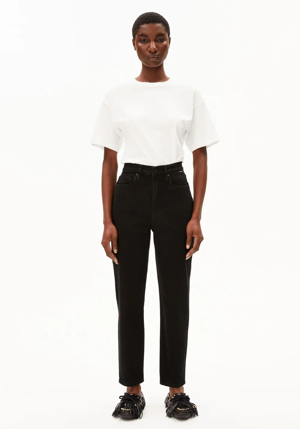 Nos nouveaux jeans mom MAIRAA améliorés combinent une coupe qui souligne la taille avec des jambes légèrement fuselées et une longueur cheville. La matière de haute qualité, composée de coton recyclé et de TENCEL™ Lyocell légèrement extensible, offre une liberté de mouvement confortable et donne à chaque tenue un look intemporel.