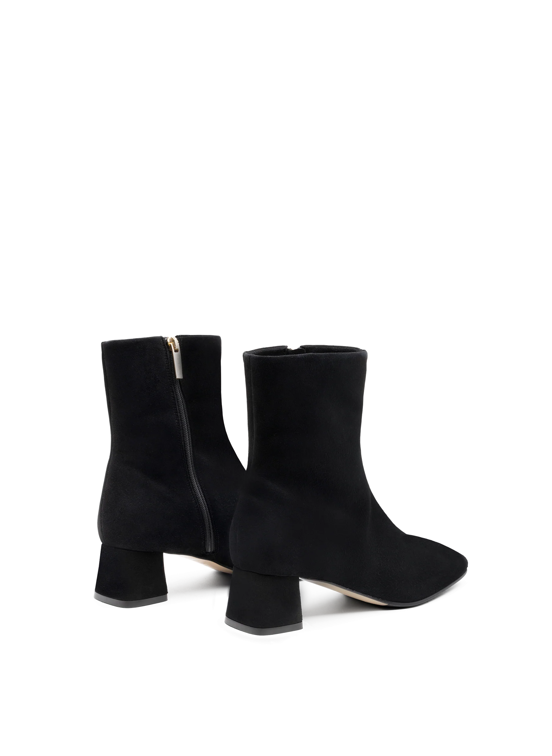Bottine à bout carré en daim noir.