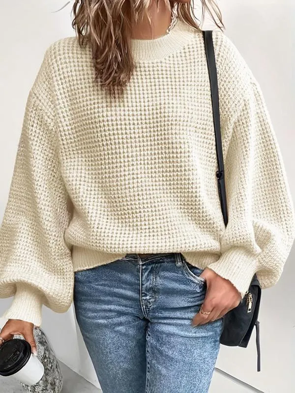 - Style: Pull décontracté à col rond et manches lanternes