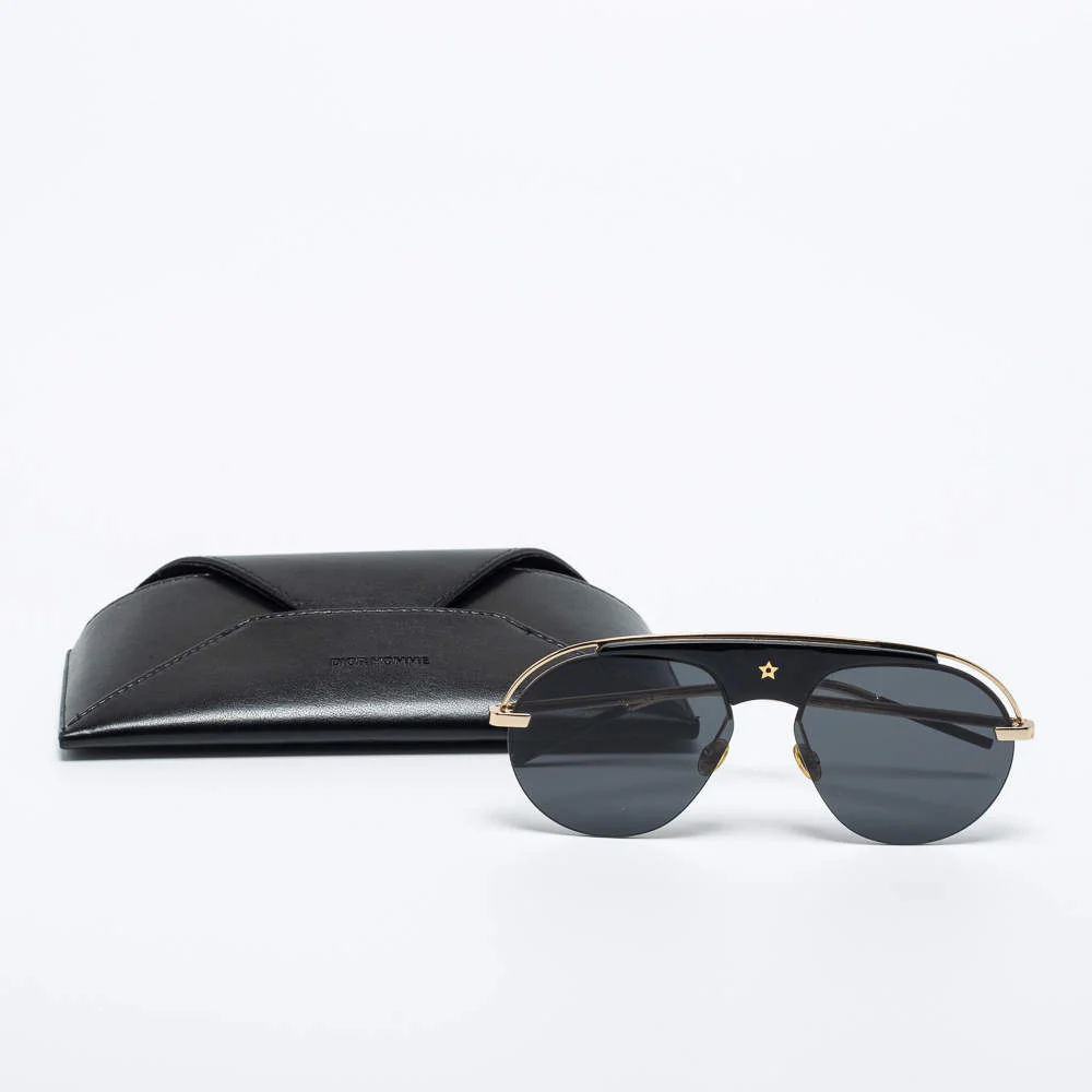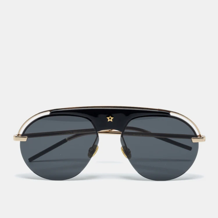 Dior revisite le modèle aviateur classique avec les lunettes de soleil Dio(r)evolution. Leur monture ronde audacieuse associe métal résistant et acétate léger, avec un double pont robuste et des branches fines assurant confort et stabilité. Inspirées des lunettes de pilote, elles se distinguent par leur design contemporain, leurs verres noirs et le motif étoilé emblématique. Élégantes et originales, ces lunettes Dior sont idéales pour affirmer votre style et se démarquer. Fabriqués en Italie.