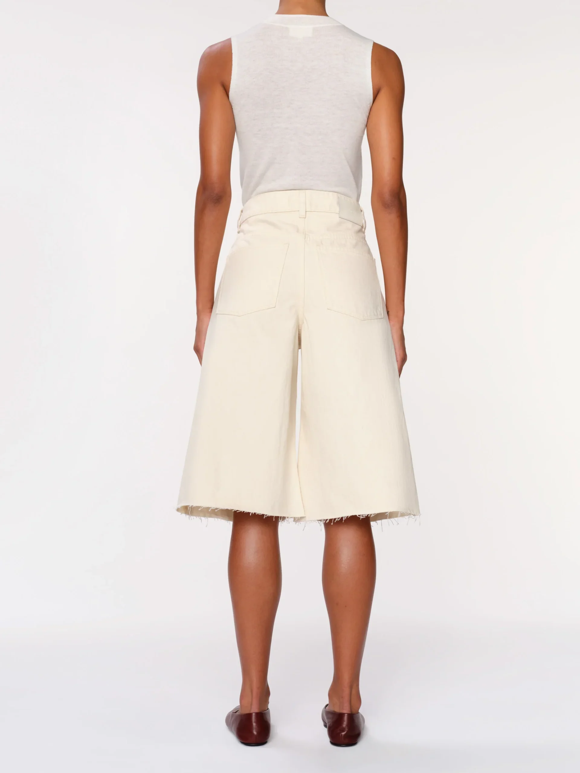 Lucila est un short très haut, au genou, avec une jambe large exagérée pour un look surdimensionné et affirmé.