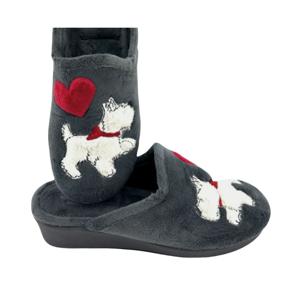 Ces pantoufles de la marque Garzon offrent un confort douillet idéal pour les moments de détente à la maison. Conçues dans une matière douce et agréable au toucher, elles enveloppent le pied avec délicatesse. Leur broderie représentant un petit chien accompagné d’un cœur rouge apporte une touche tendre et charmante, pour un style à la fois chaleureux et plein de douceur.