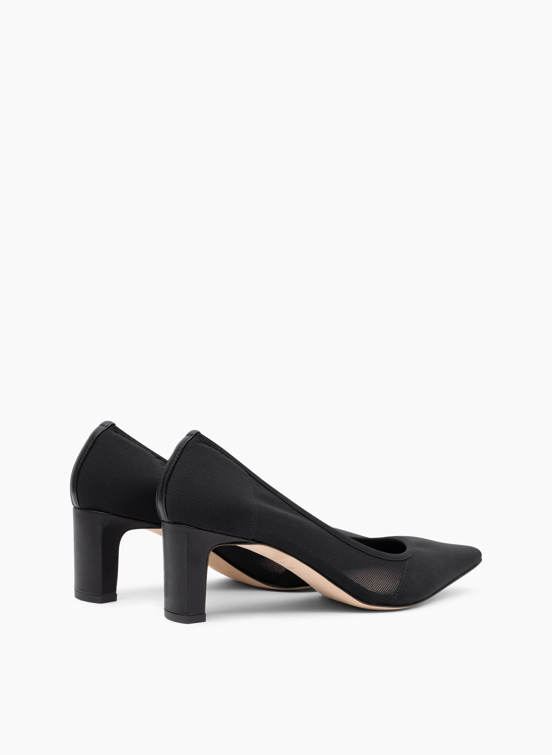 Escarpin à bout effilé en résille et cuir d’agneau.