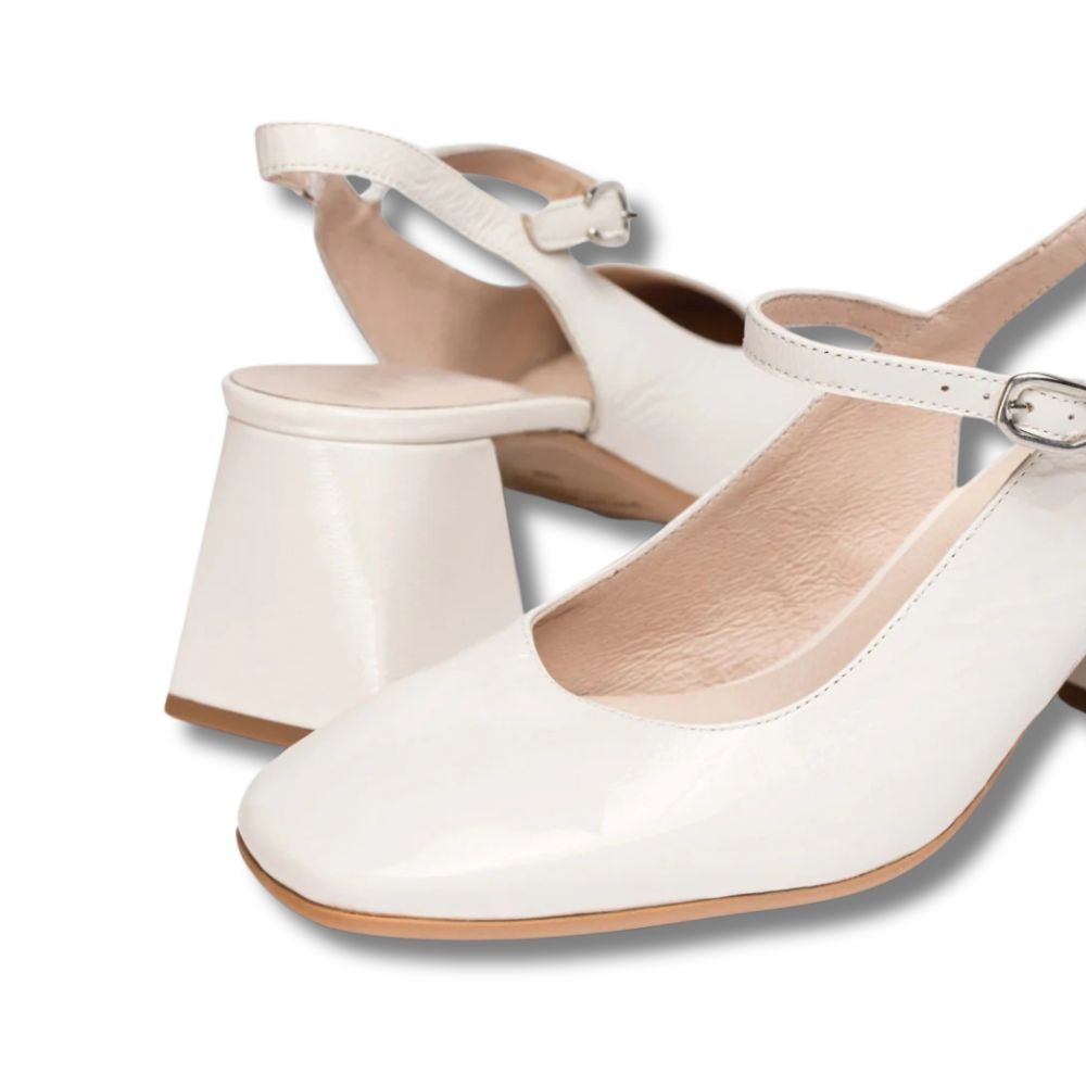 Escarpins Mary Jane à talon slingback. Le modèle Jane possède un bout carré. Grâce à son élastique, le maintien est parfait, et son talon de 6 centimètres offre une hauteur idéale. Profitez d'un confort garanti grâce à la semelle intérieure rembourrée MemoryGel : préparez-vous à une sensation de légèreté et de légèreté !