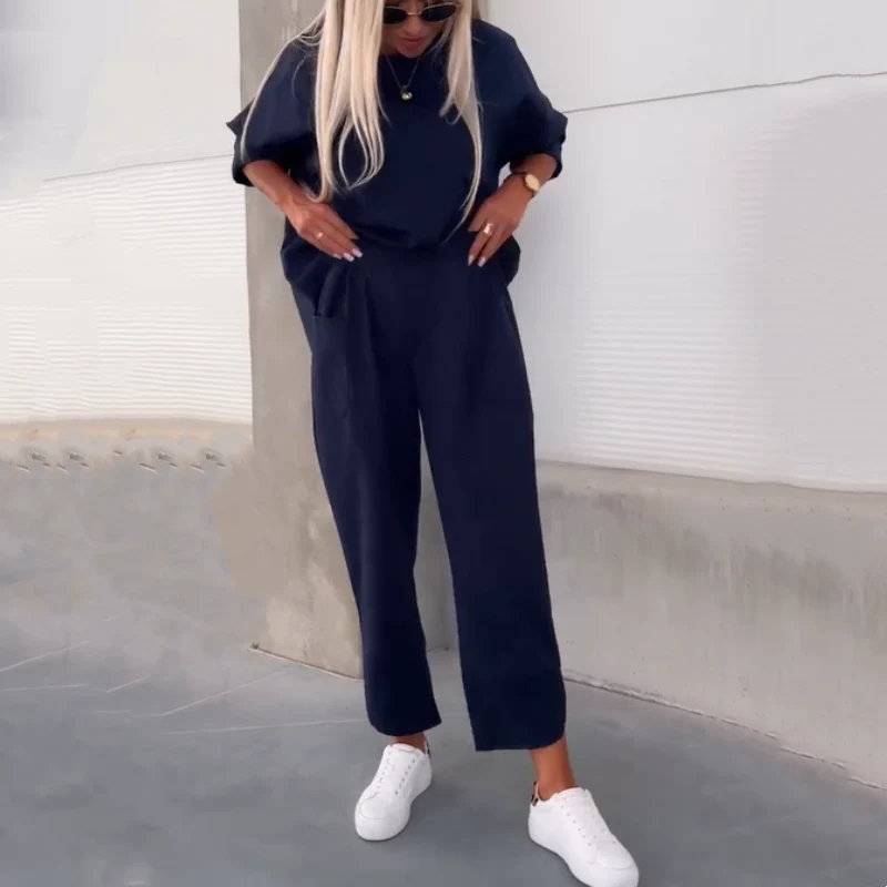 ✔ Design classique : Haut élégant à manches courtes avec col rond, assorti d’un pantalon ample pour une allure à la fois décontractée et tendance.