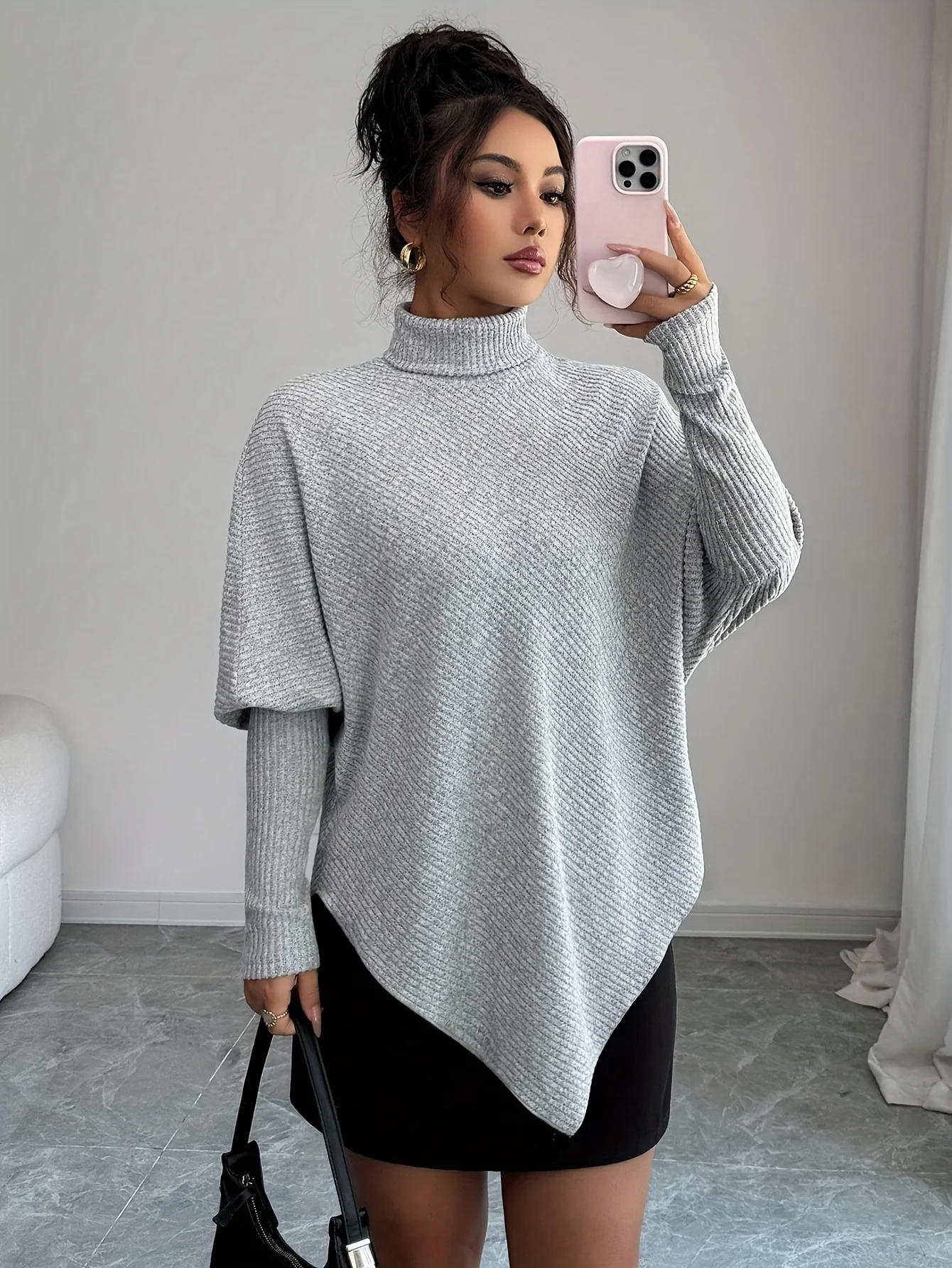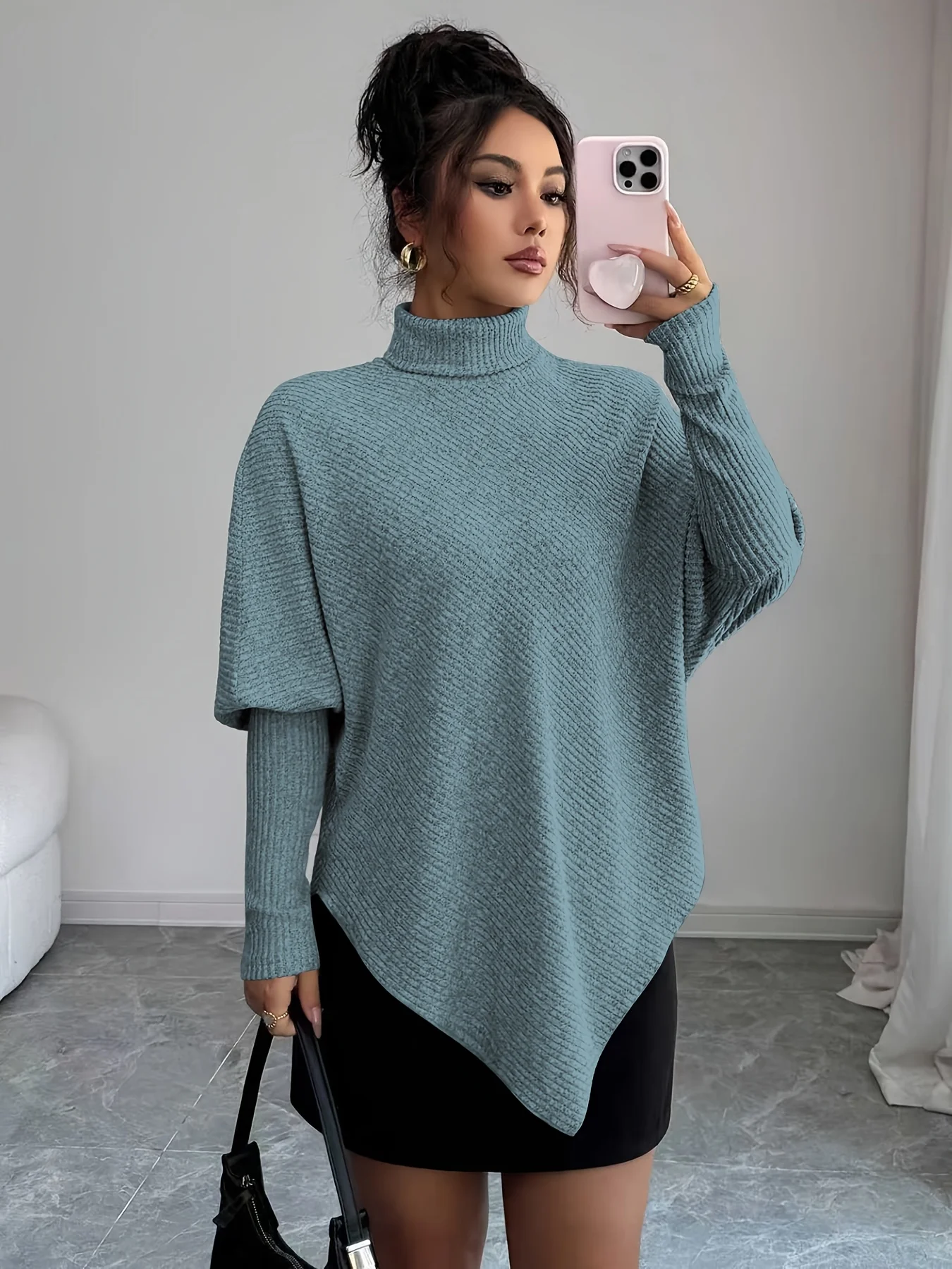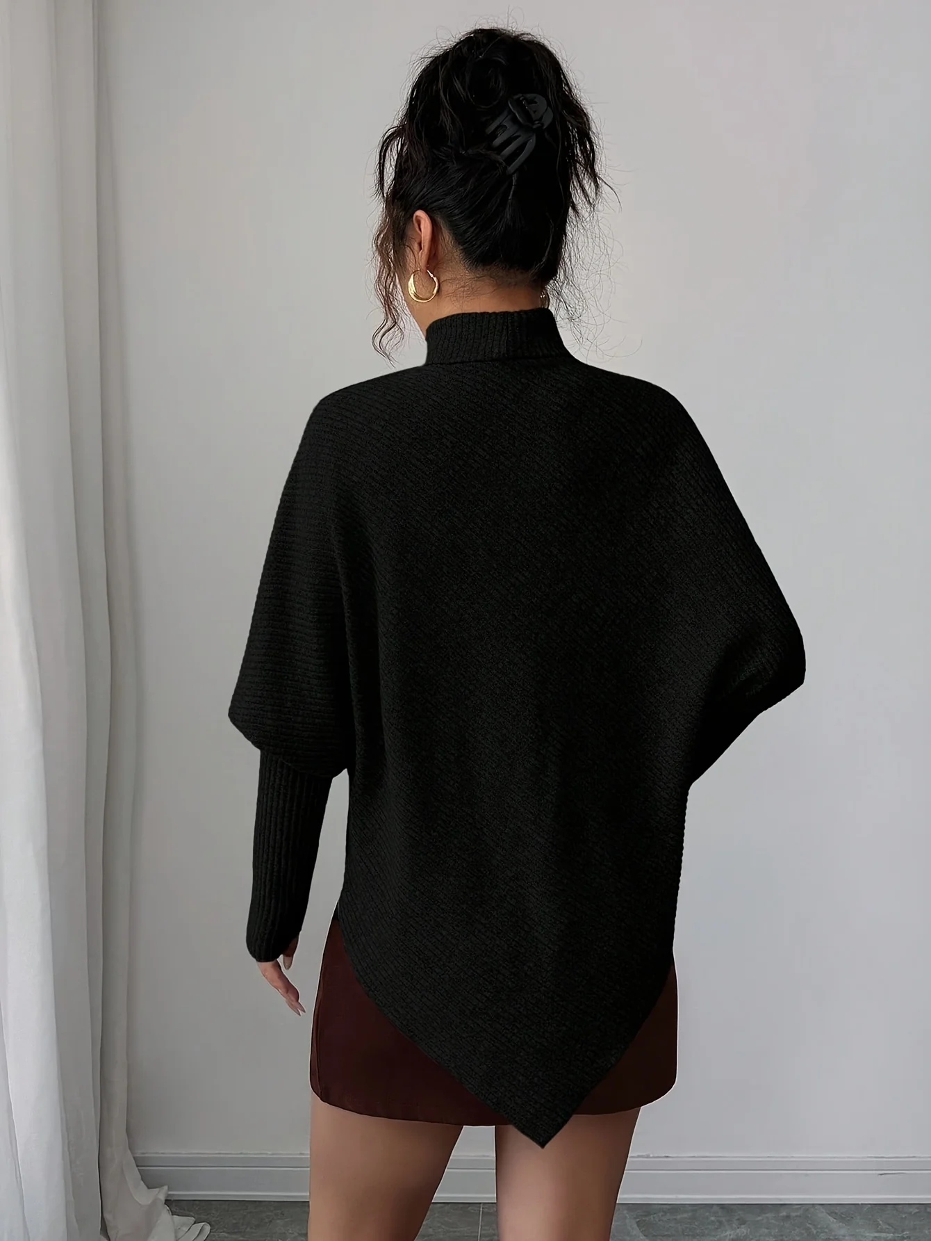 Ce haut à col montant revisite le pull quotidien avec une coupe asymétrique audacieuse et une maille fluide. Sa forme ample et ses manches chauve-souris créent un tombé naturel qui flatte la silhouette sans effort. Doux au toucher et agréable à porter, il accompagne vos journées avec aisance et modernité. Une pièce raffinée pensée pour sublimer vos looks décontractés ou habillés.