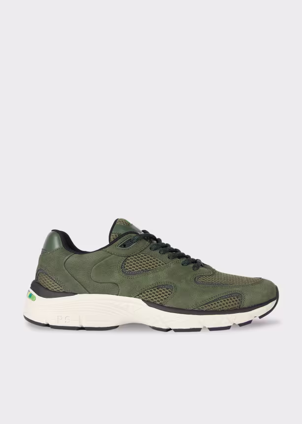 Empiècement en nubuck griffé sur la languette.
