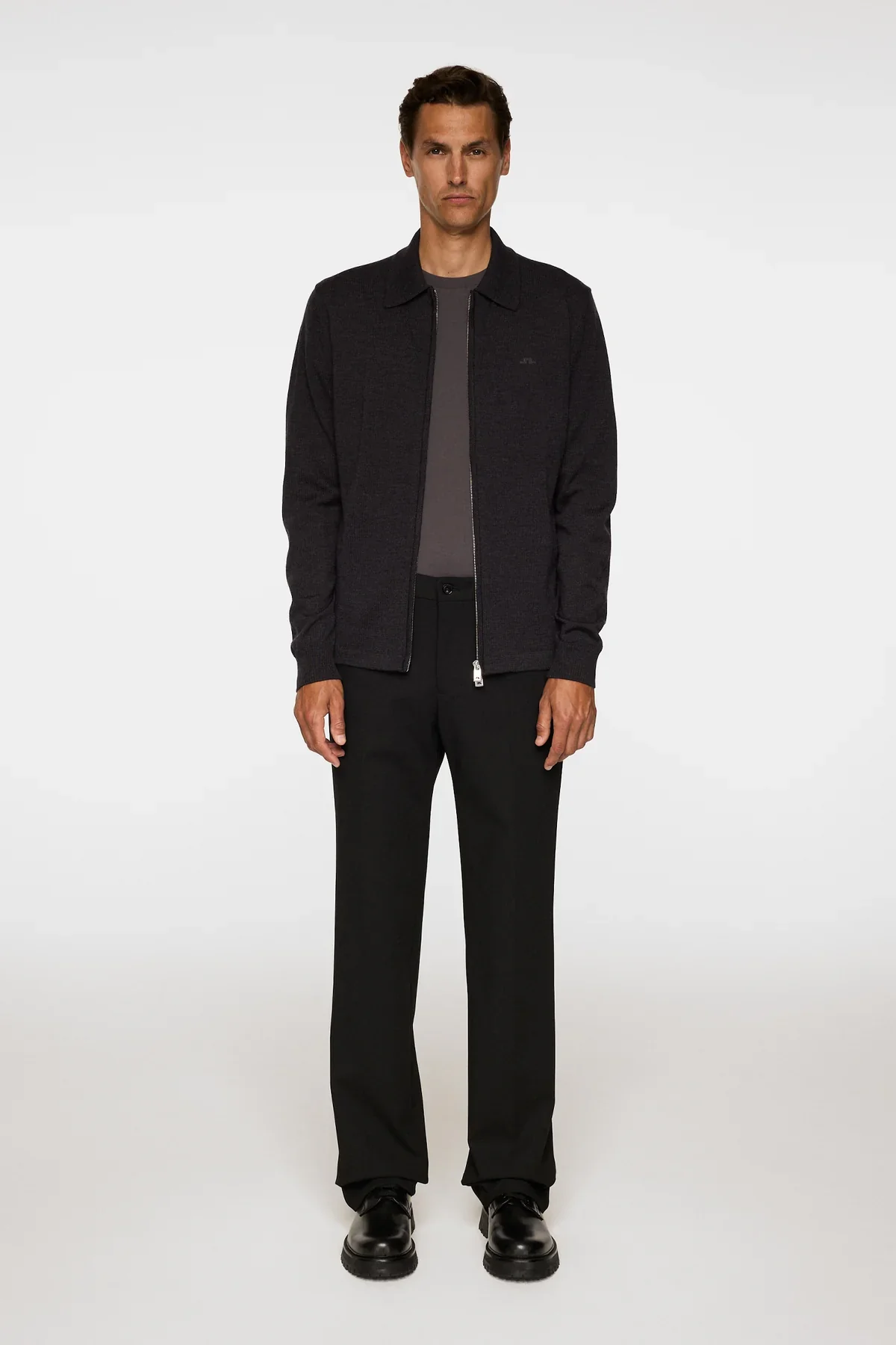 Cardigan zippé haut de gamme pour les journées froides. Le cardigan Kaleb est confectionné en laine mérinos Tollegno sans mulesing, avec une finition double épaisseur, une fermeture éclair bidirectionnelle et des détails entièrement façonnés. Les poignets et le col côtelés lui confèrent une structure intemporelle.