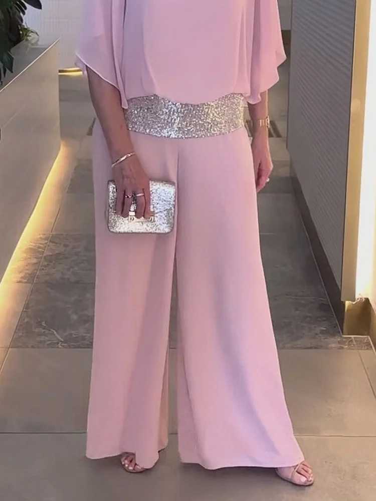 Ce set 2 pièces composé d’un haut à manches chauve-souris et d’un pantalon à jambes larges allie style chic et confort. Le haut avec son col rond et ses sequins ajoutent une touche de brillance, tandis que le pantalon fluide assure une silhouette élégante. Parfait pour les journées décontractées au bureau ou pour vos sorties estivales, ce set met en valeur votre féminité tout en restant confortable.