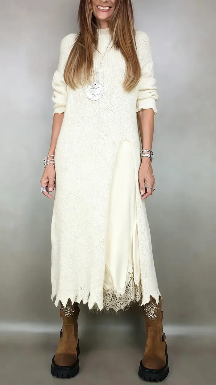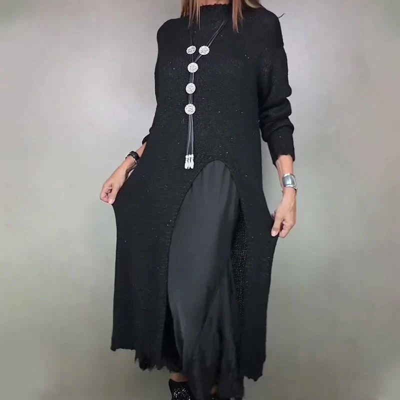 ✔ Style superposé élégant: Le pull doux se marie parfaitement à la robe fluide, créant un look chic et moderne sans effort.