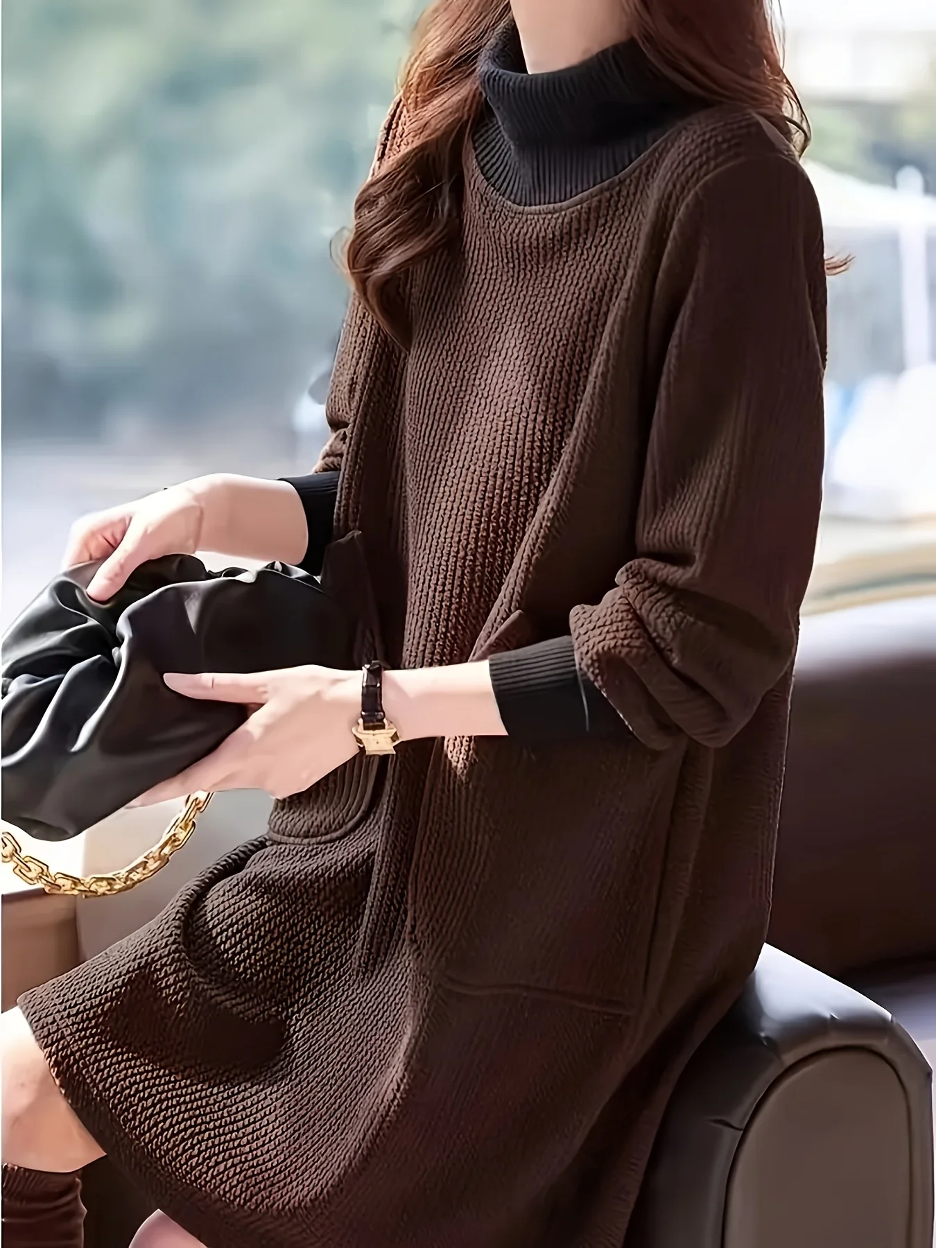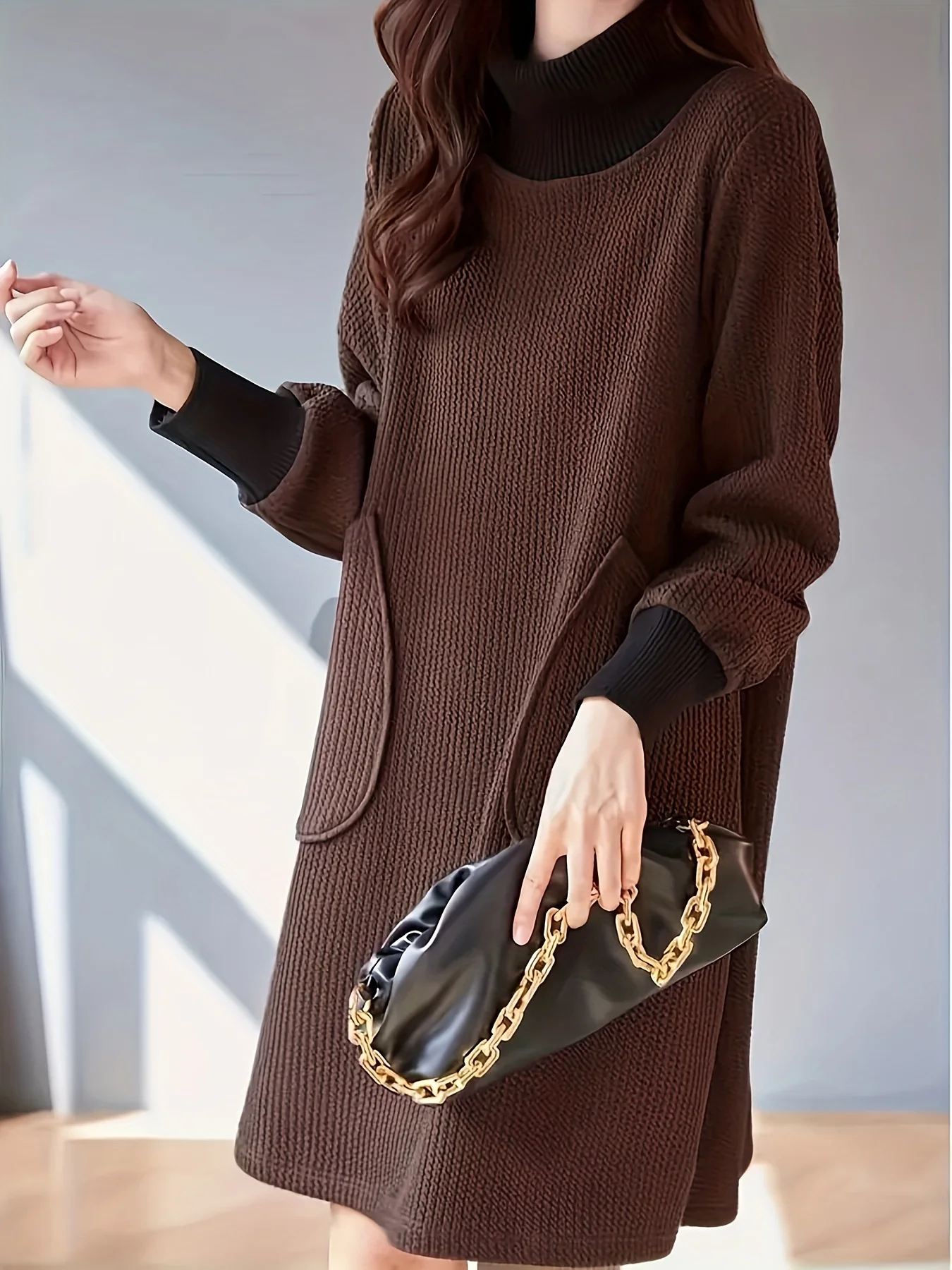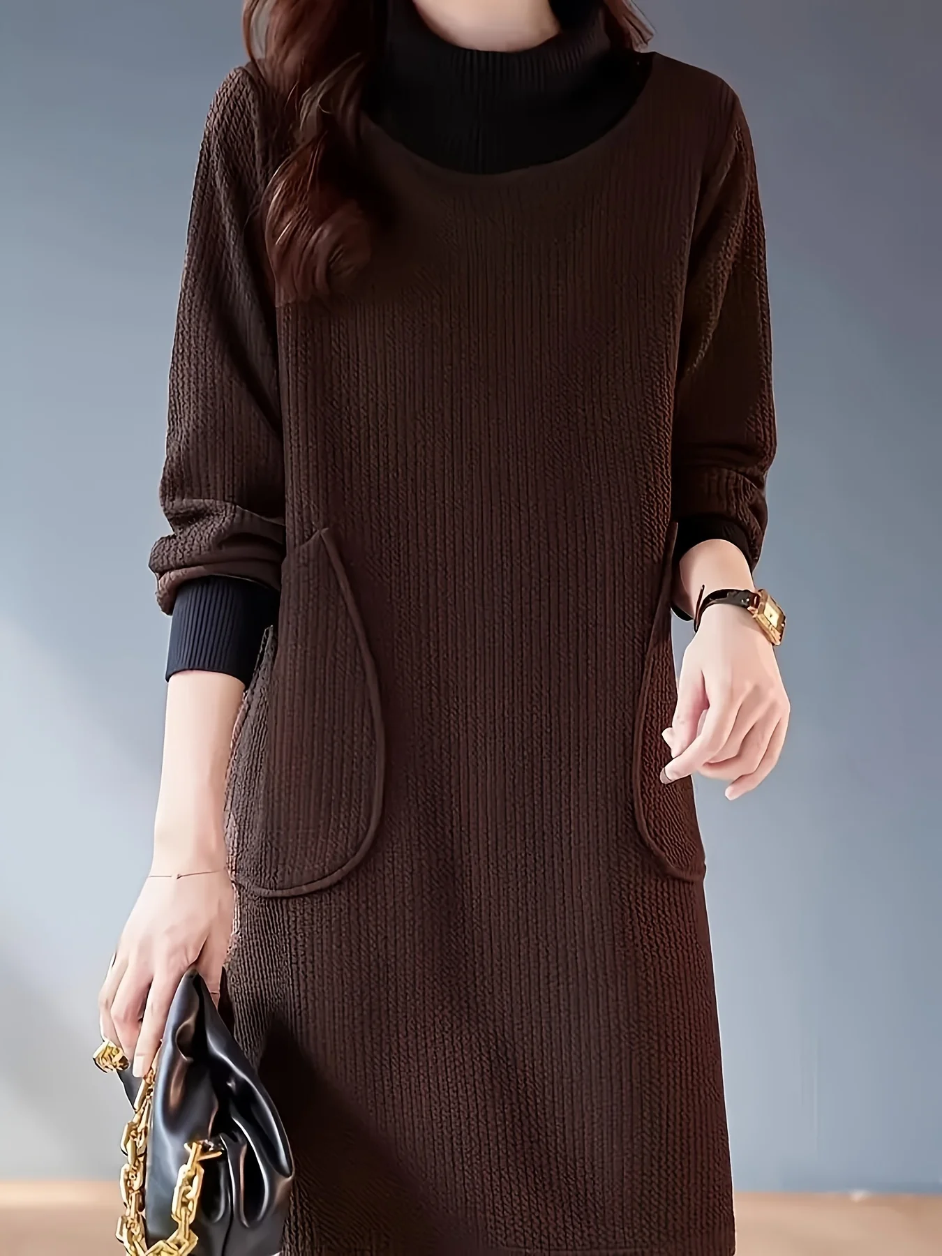 Robe midi à col haut et manches longues élégante