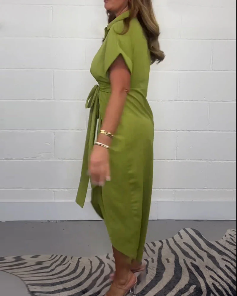 - Style: Décontracté, Chic, Col à revers, Manches courtes, Coupe asymétrique
