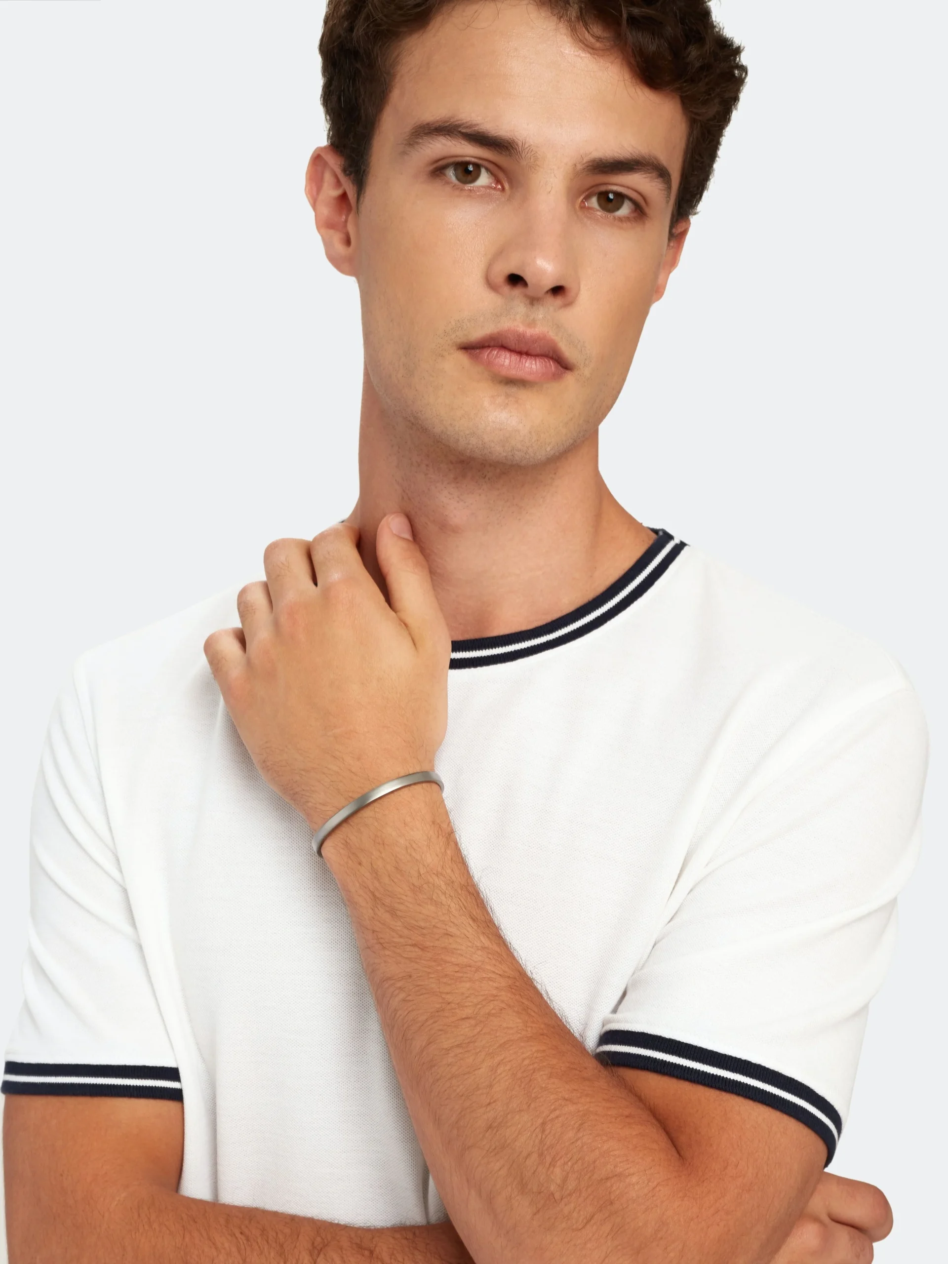 The minimal slip-on Singular Cuff for men, is a timeless classic that transcends seasons and looks good with any outfit. It’s slightly adjustable in size ranging from small to large and has a polished exterior and interior finish.