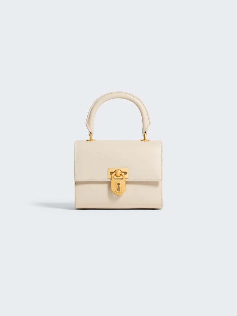 Ce sac miniature est réalisé en cuir de veau laminé.