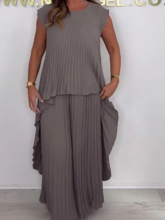 ✔ Design plissé: Le design plissé vertical du top et du pantalon allonge visuellement le corps, apportant une silhouette plus fine et plus longue.