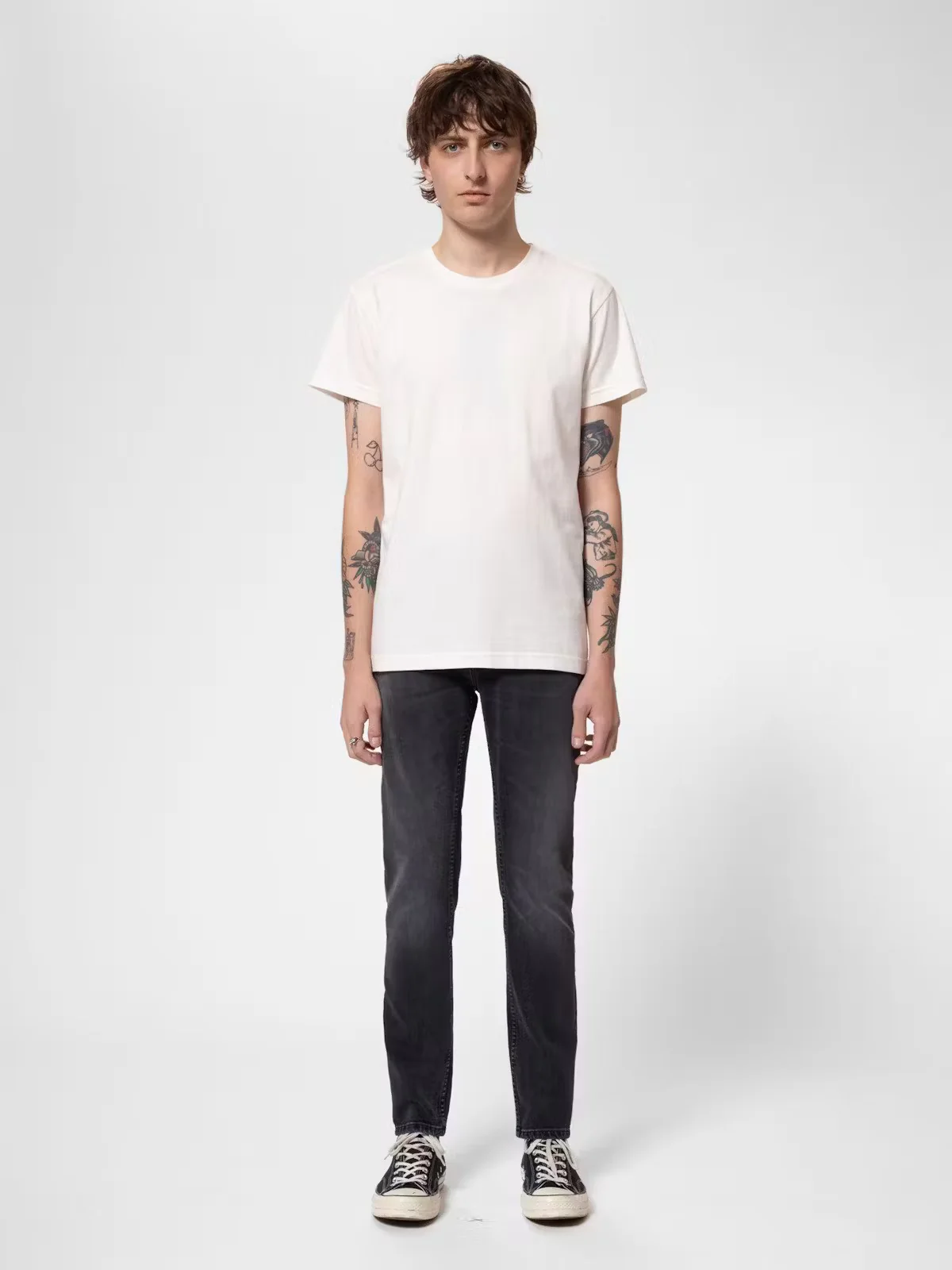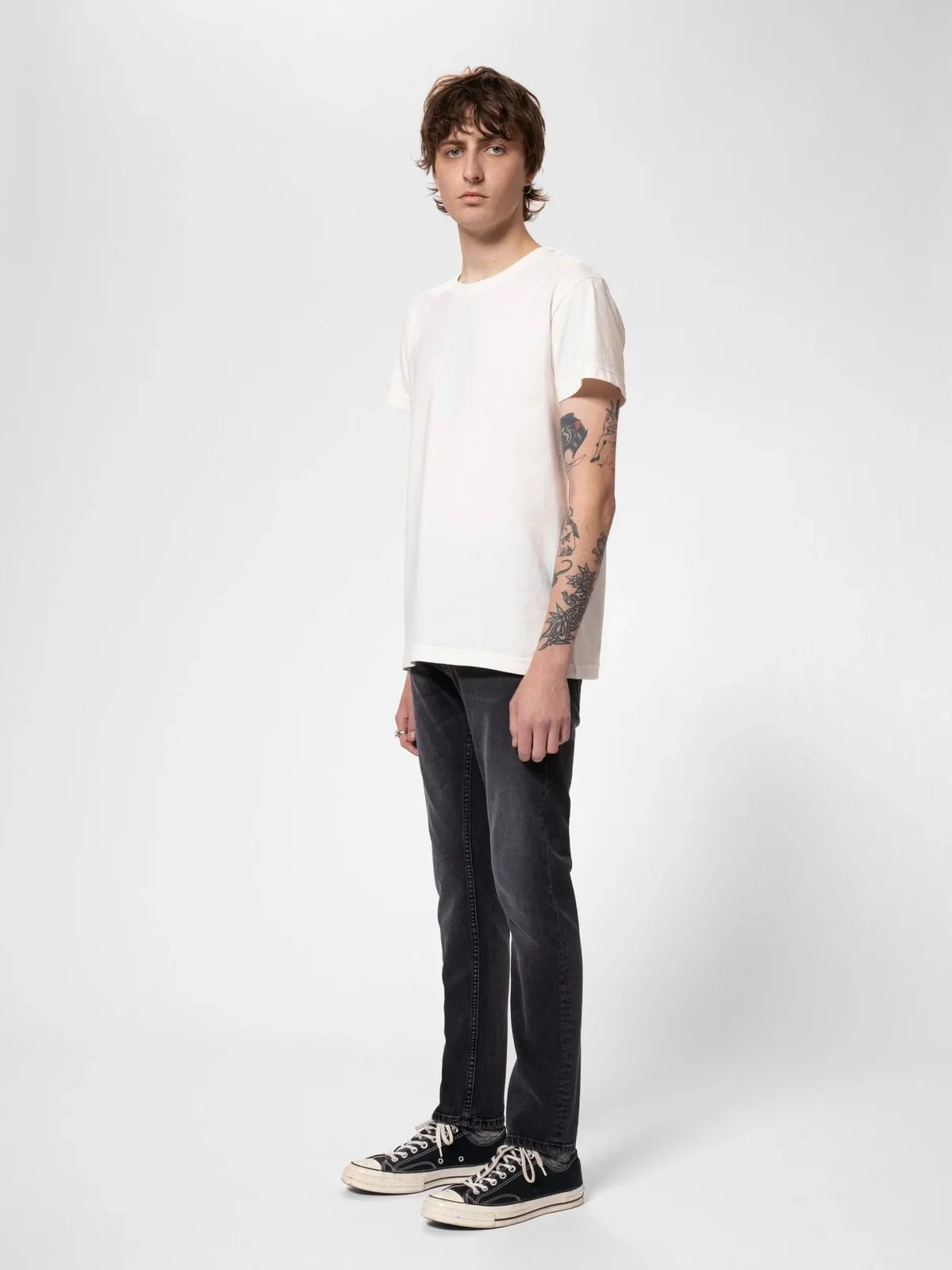 Jean slim à jambe droite en denim extensible confort bio. Ce jean noir a été délavé pour obtenir une teinte gris moyen avec des reflets gris clair. Le lavage a révélé un léger grain du denim, et au niveau des coutures, le lavage a accentué la construction du jean. Sur les cuisses, les genoux et les poches arrière, des marques d’usure douces, mais contrastées, ajoutent des reflets qui donnent à ce jean un aspect délavé et usé. Pour nous, ces teintes grises ont quelque chose de spécial.