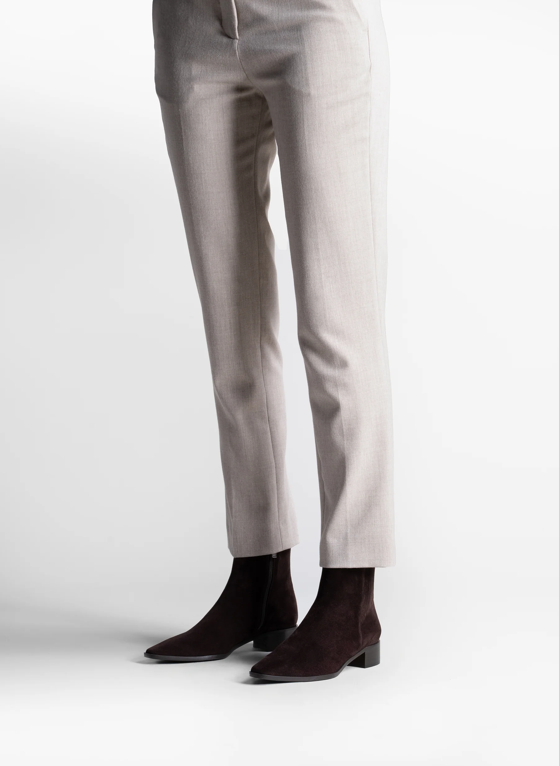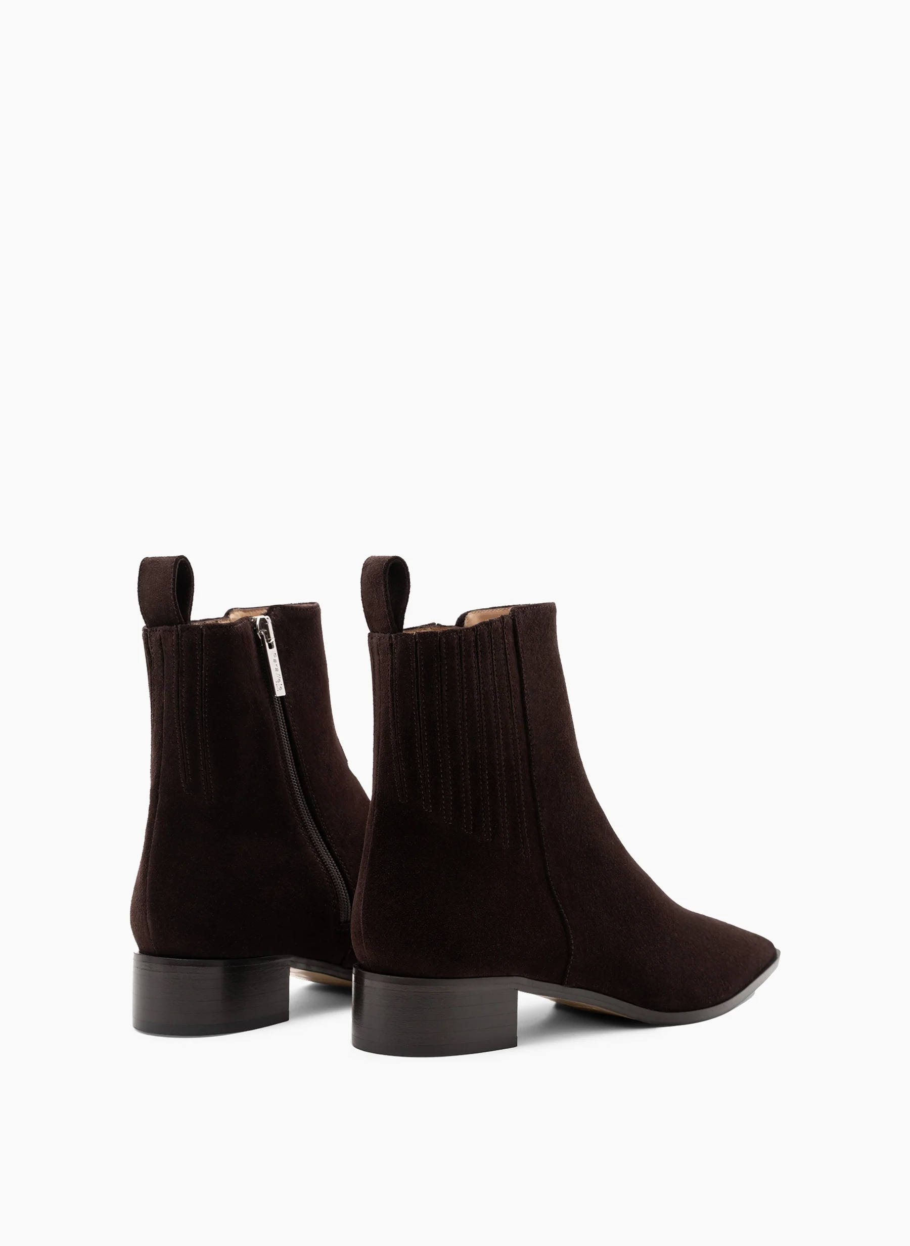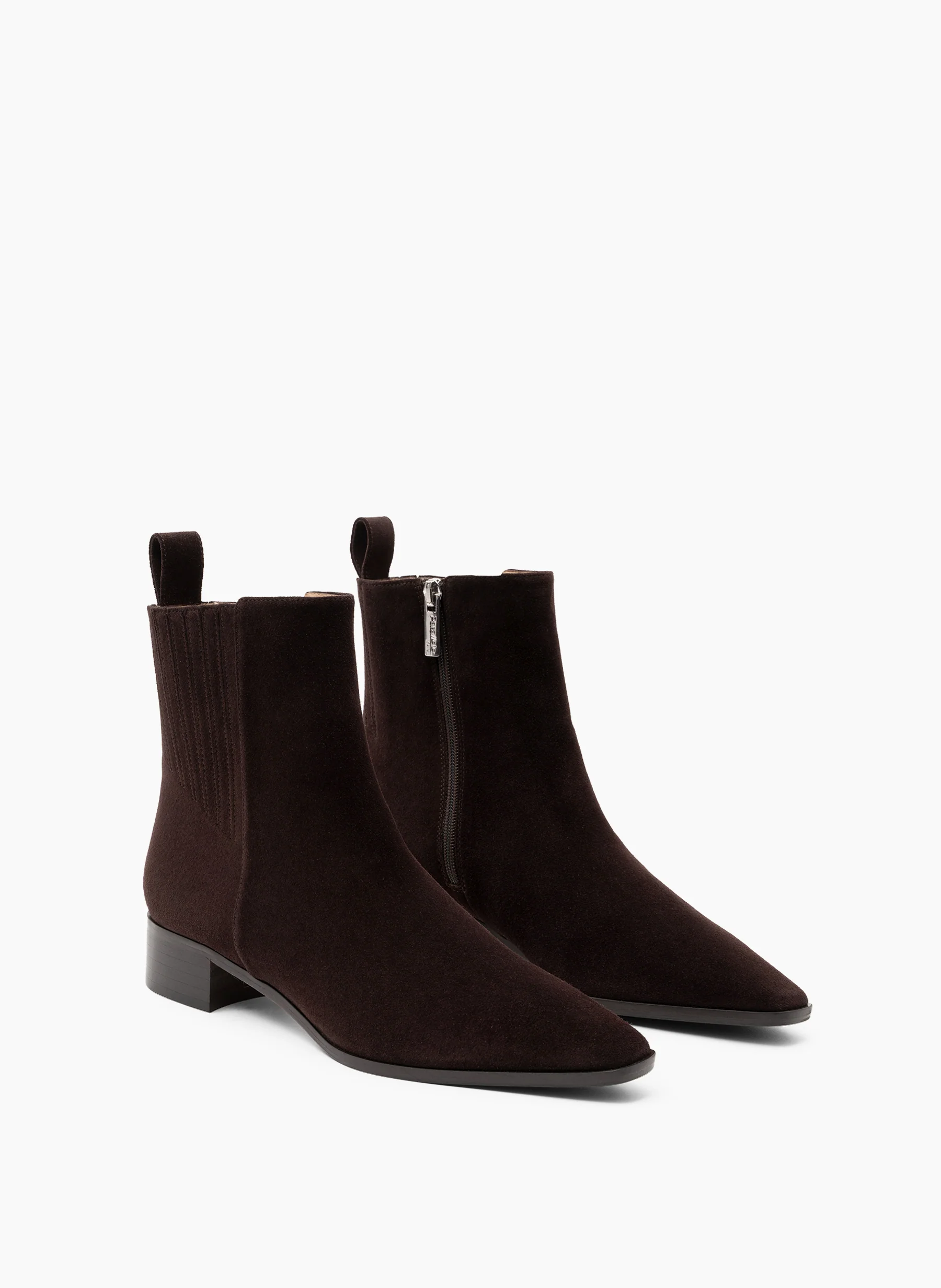 Bottine chelsea à bout allongé en daim expresso.