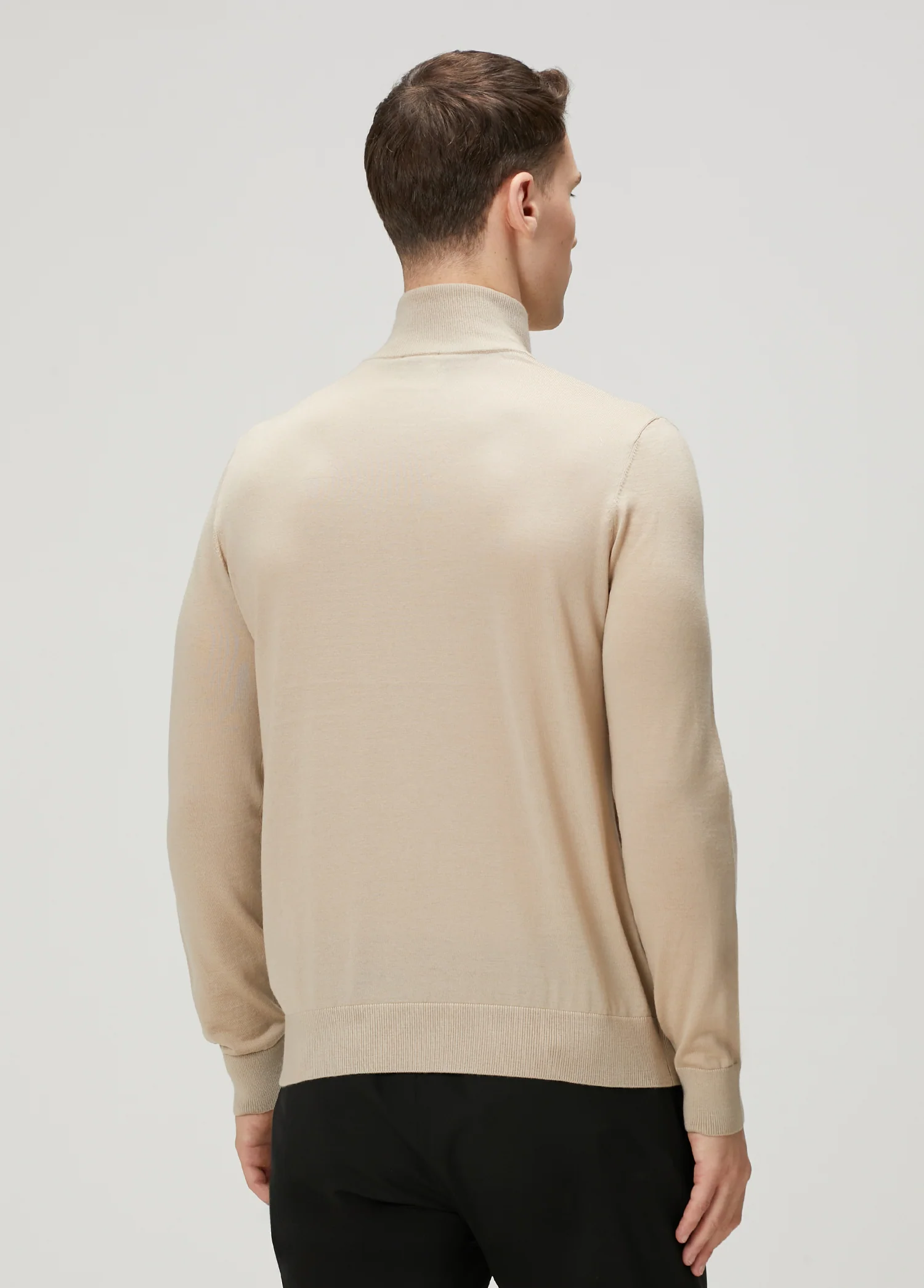 Ce col montant en beige capture l’essence du confort contemporain grâce à la pureté de la laine 100 %. La coupe classique offre une grande liberté de mouvement sans compromettre l’élégance de la silhouette, tandis que le col montant définit un profil audacieux et moderne. La laine sélectionnée garantit un toucher doux et une grande durabilité, transformant chaque jour en une expérience de véritable bien-être. La coupe décontractée s’adapte naturellement au corps, créant des lignes épurées qui mettent naturellement en valeur la silhouette masculine. Pour préserver la qualité de ce vêtement, nous recommandons un lavage à la main, en évitant l’eau de Javel. Le séchage en machine doit se faire à basse température, tandis que le repassage ne doit pas dépasser 110 °C sans vapeur. Le nettoyage à sec au tétrachloroéthylène préserve les propriétés de la fibre.