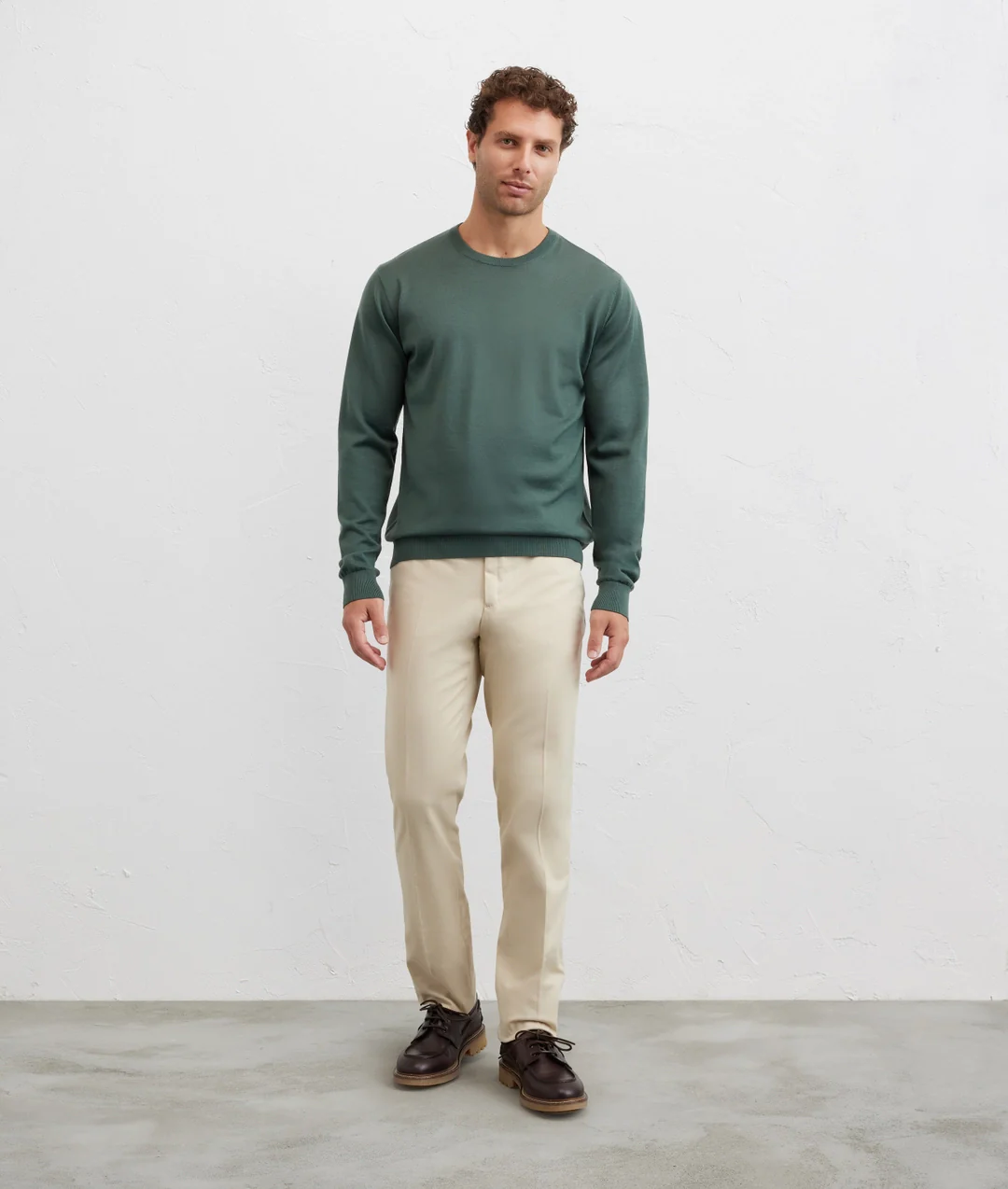 Ce pull vert à col rond incarne la tradition textile italienne grâce à la pureté de sa laine 100 %. Sa coupe classique assure un confort naturel et une grande liberté de mouvement, parfaite pour toutes les occasions, professionnelles ou informelles. Son jersey 16 gauges lui confère douceur et résistance, tandis que son col rond définit une silhouette épurée et polyvalente. Le tricot fin conserve sa forme au fil du temps, garantissant une apparence impeccable saison après saison. Pour préserver la qualité du vêtement, nous recommandons un lavage à la main, sans javel, un séchage à basse température, un repassage à 110 °C maximum sans vapeur et un nettoyage à sec au tétrachloroéthylène si nécessaire. Un vêtement essentiel qui exprime un style authentique et la qualité italienne, idéal pour compléter la garde-robe de l’homme moderne.