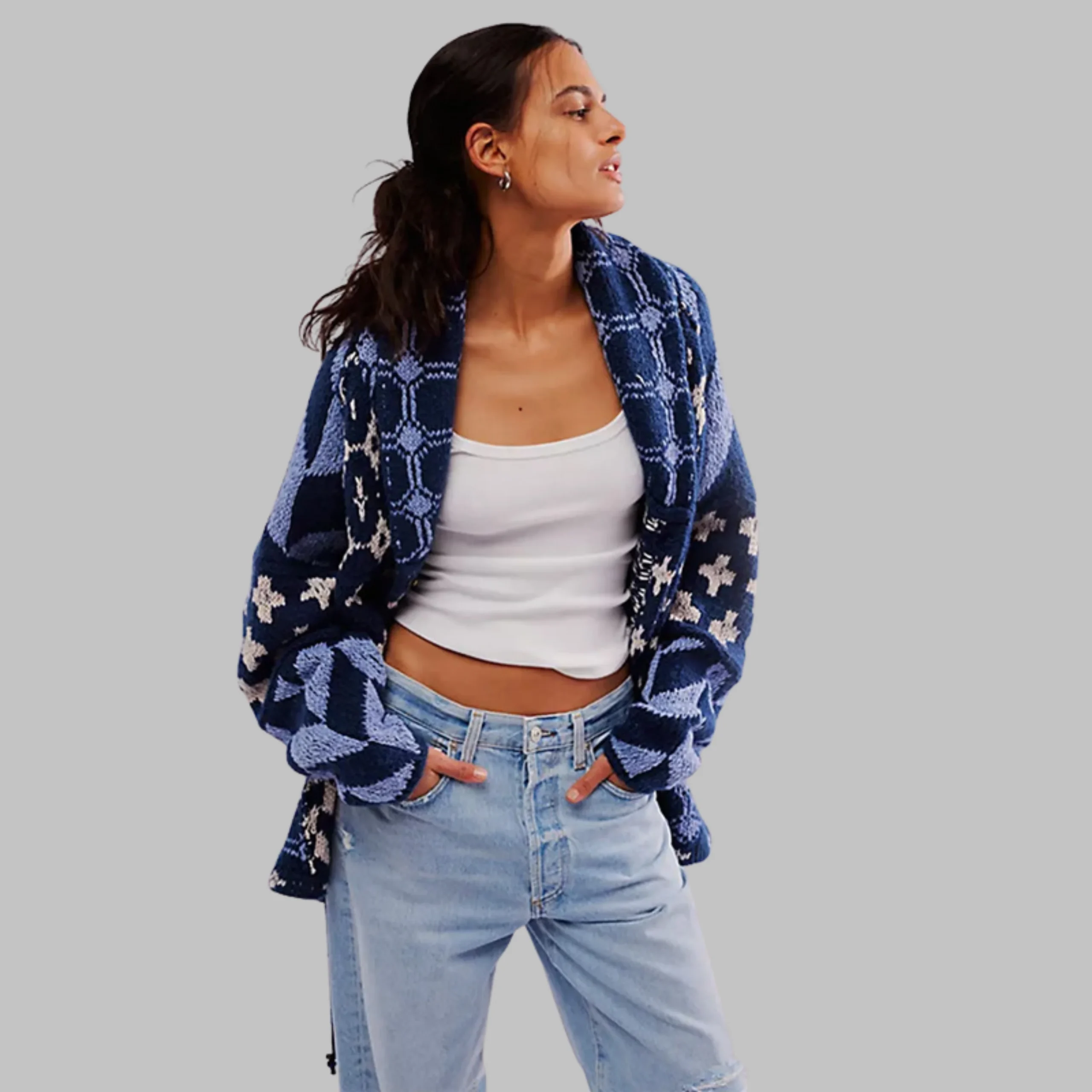 • Type: Cardigan oversize à col boutonné vintage
