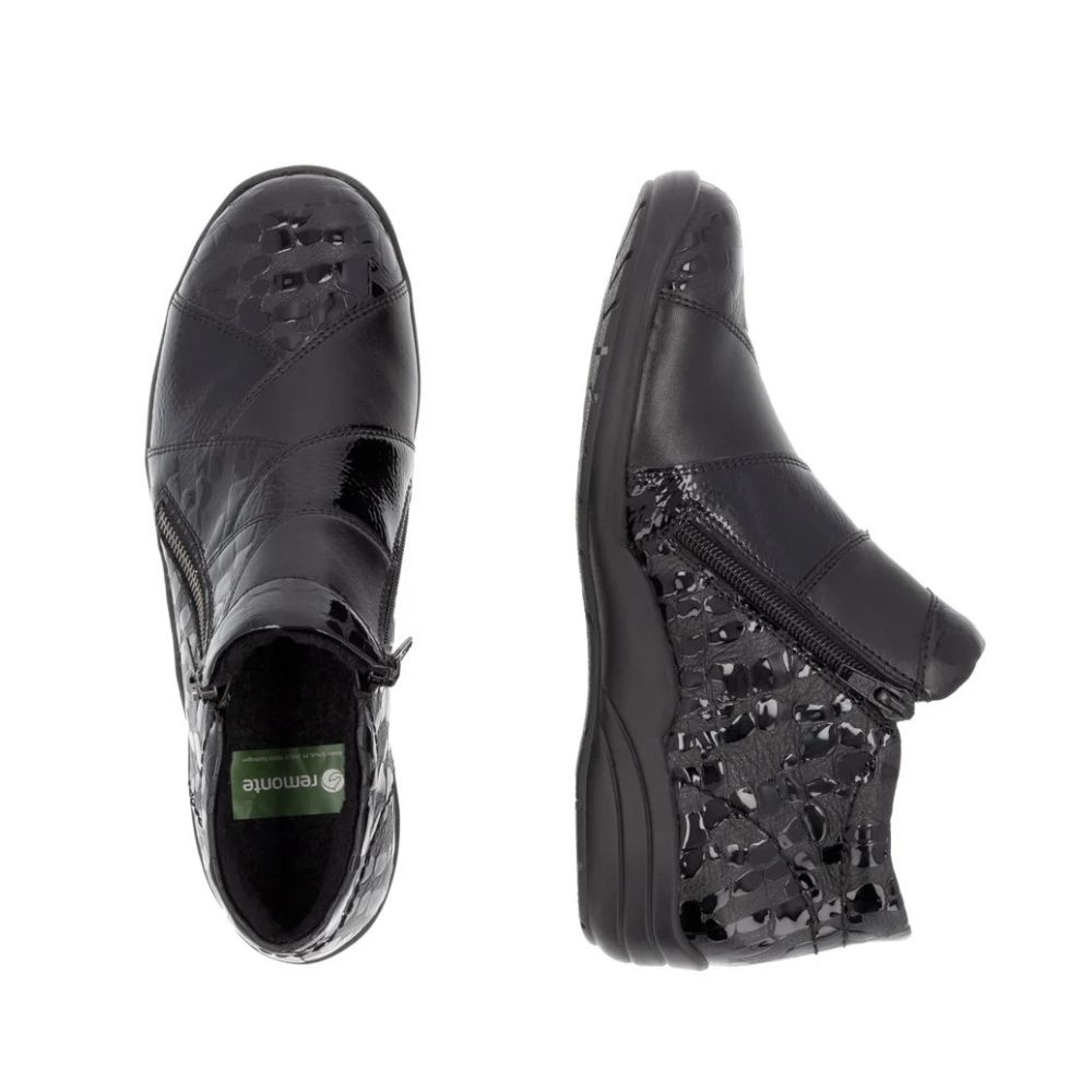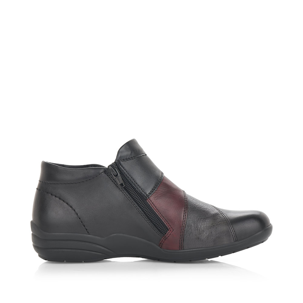 Classiquement féminines et chics ! Ces bottines noires Remonte en cuir lisse respirent la féminité. La fermeture éclair facilite l'enfilage et le retrait. Une semelle légère et amortissante, ainsi qu'une semelle intérieure rembourrée et amovible, sont autant d'atouts de ces bottines. De plus, leur largeur supplémentaire offre une plus grande liberté de mouvement à l'avant-pied. On adore !