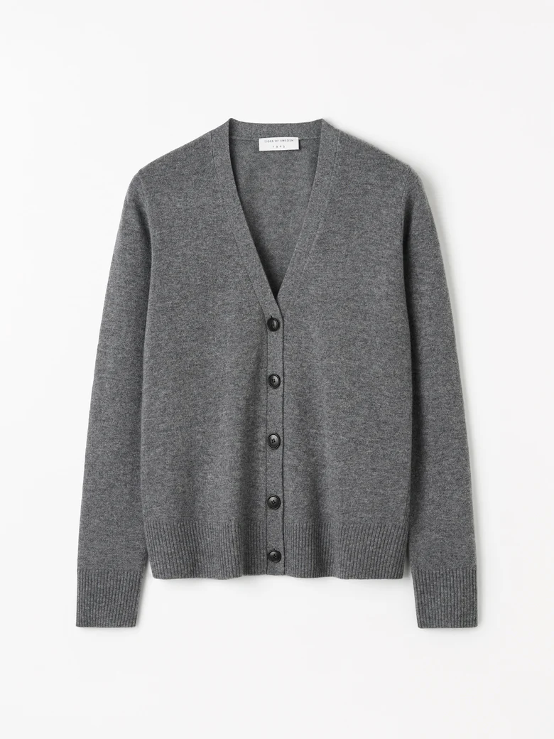 Le cardigan Khloe est confectionné dans un mélange luxueux de laine et de cachemire, pour un toucher doux et raffiné. Il présente un tricot fin sur l’ensemble, avec un corps et des manches réalisés dans un jersey classique pour une finition lisse. La patte de boutonnage sur le devant est tricotée en maille pleine, ajoutant une texture et une structure subtiles. Une fermeture à boutons sur le devant rehausse son design intemporel, tandis que l’ourlet inférieur et les poignets sont agrémentés d’une bordure côtelée 1×1 épurée. Conçu avec des détails entièrement façonnés et une coupe flatteuse arrivant aux hanches, ce vêtement allie confort et élégance à chaque maille. La laine utilisée dans ce produit est certifiée par le Responsible Wool Standard.