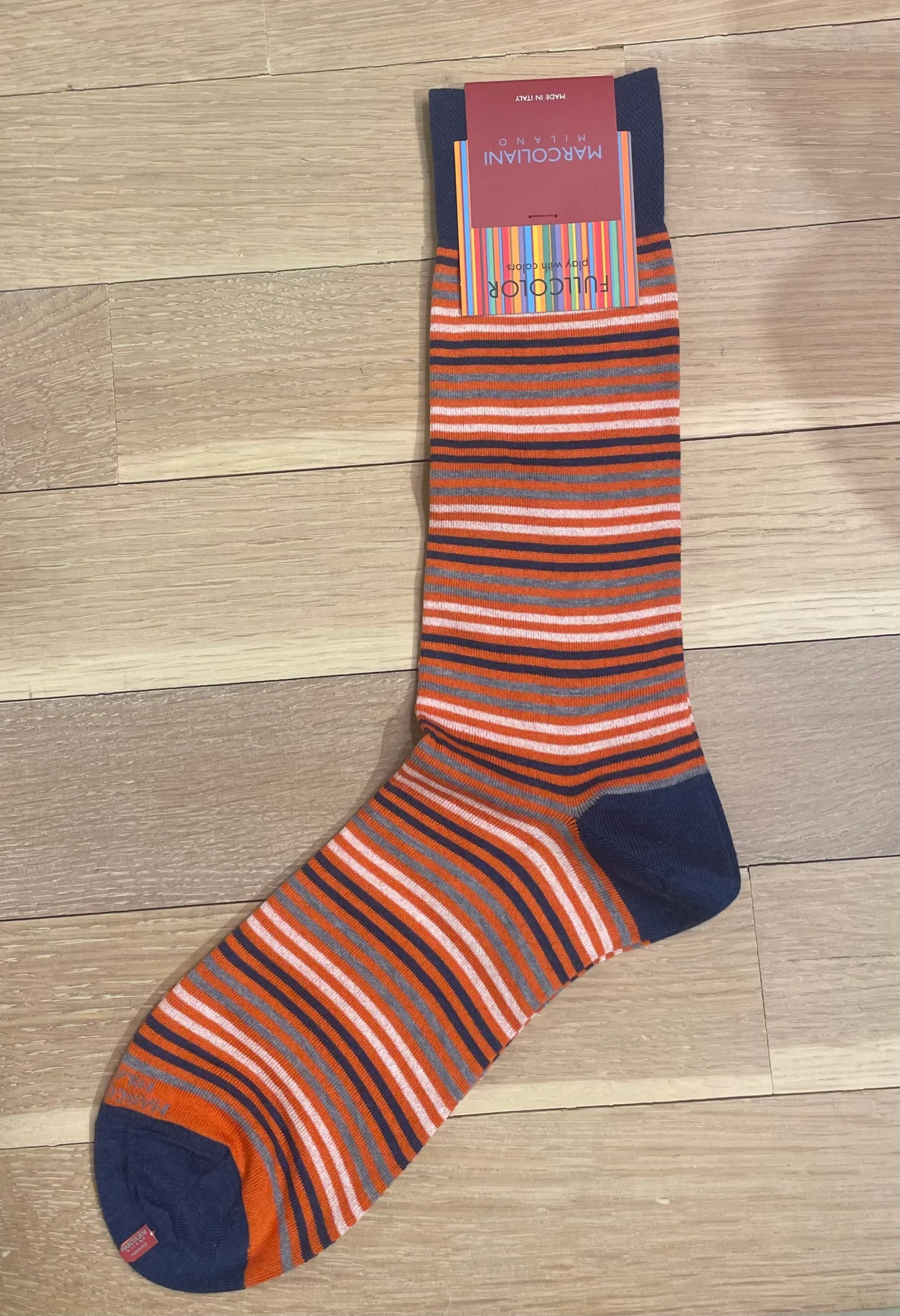 Marcoliani – Chaussettes colorées à fines rayures – Orange