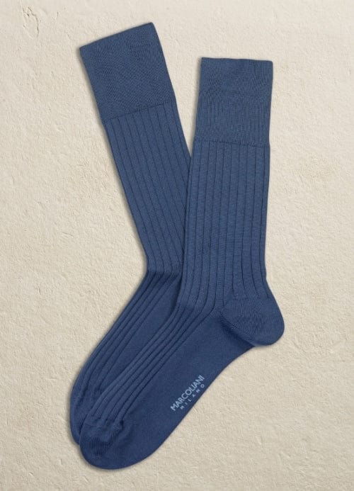 Marcoliani – Chaussettes côtelées en coton égyptien et nylon – Bleu denim