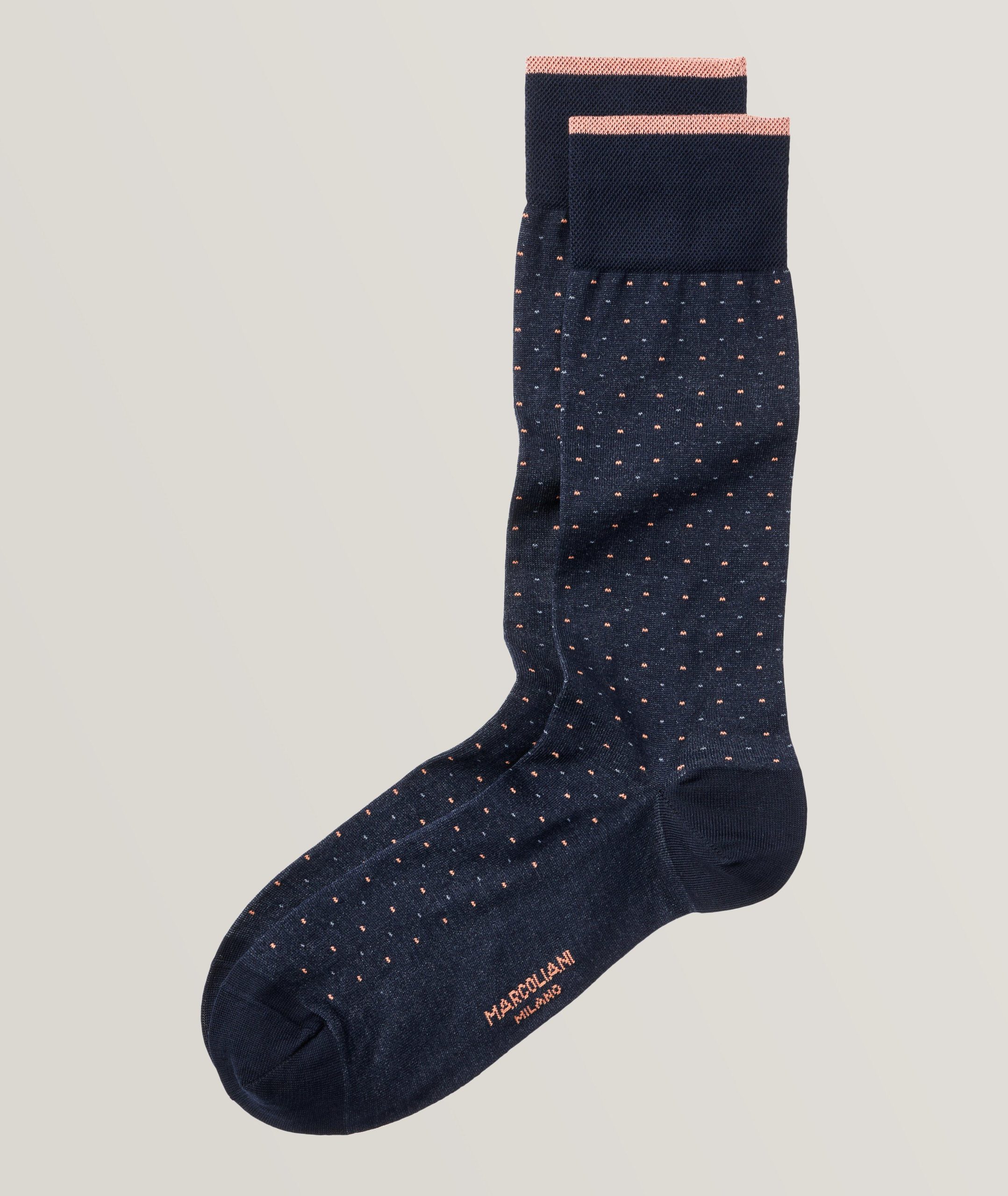 Marcoliani – Chaussettes en coton pima à motif pointillé – Marine