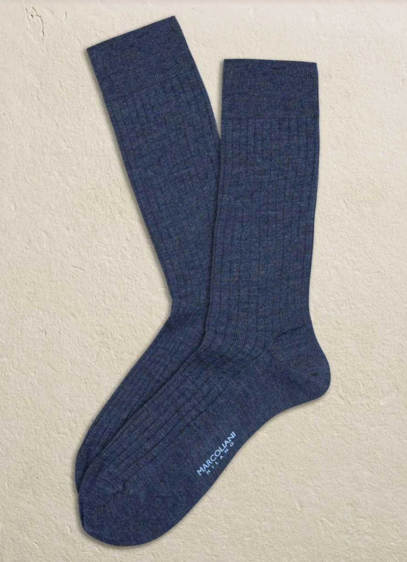Marcoliani – Chaussettes côtelées en mélange de laine mérinos extrafine – Indigo